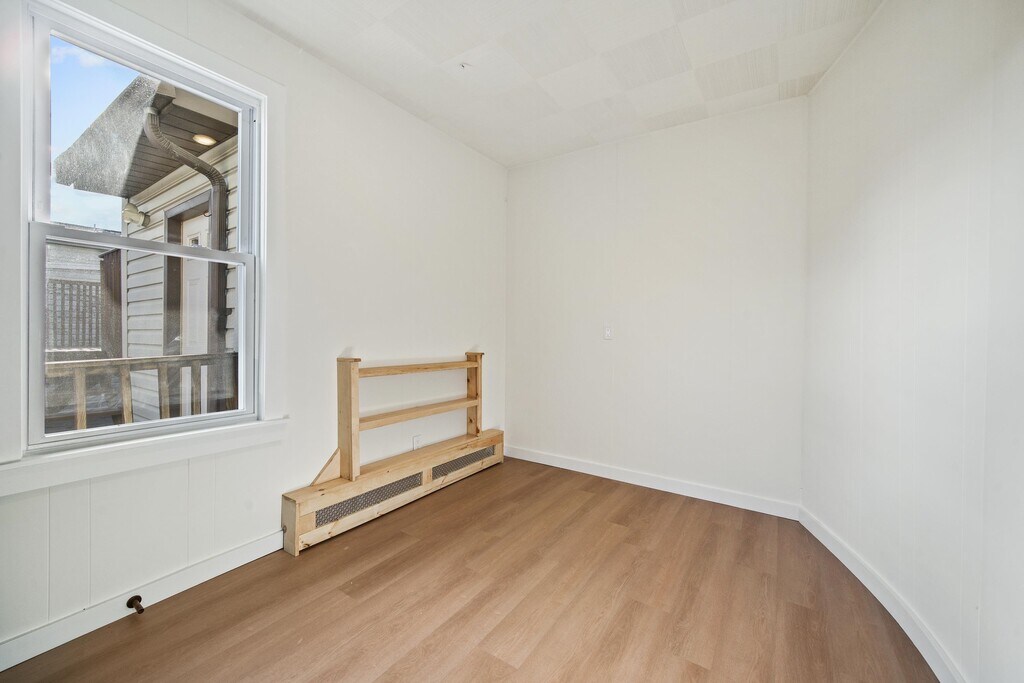 Situated on a quiet street of Jersey City Heights you will find this beautifully renovated 2 bed 1 bath apartment. The moment you walk into the apartment you are welcomed by the warm color tone and oak wood plank ceiling with a beautiful poly finish. Natural sunlight throughout gives this space an amazing feel. Custom built-ins in the bedroom closets as well as an ikea armoire for additional storage. Walking distance to Leonard Gordon Park, The Hutton, City Bike, shopping and dozens of restaurants to choose from.There is common area laundry, shared yard, and storage lockers available on-site.
