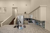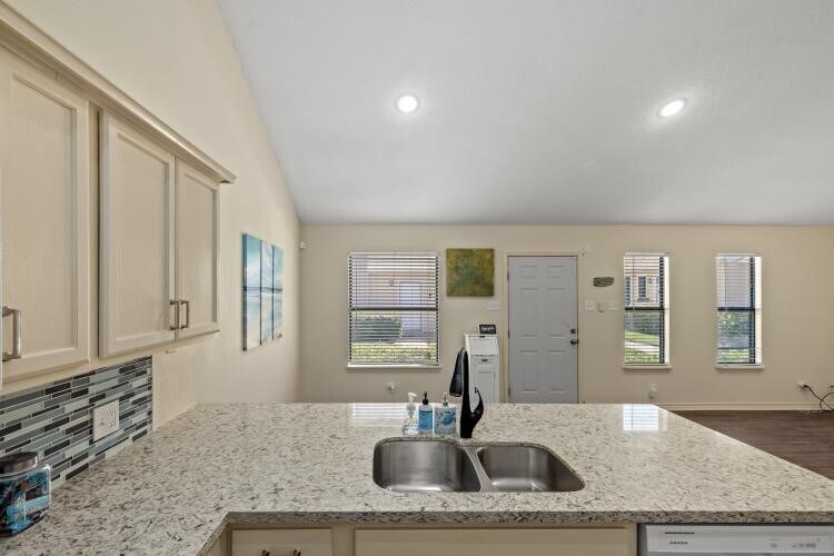 Newly remodeled,this is a great townhouse and is just 1/2 block from The Seawall and Babe's Beach yet is in a quiet setting and is a desirable end unit. So spacious with high angled ceilings and open floor plan. Move in ready with recently updated kitchen,living room and bathrooms and new flooring and paint throughout. New HVAC Nov. 2025. Oversized two car attached garage and laundry. Peek-a-boo gulf views from primary bedroom. This is an established complex and you must see today...perfect for those who always dreamed of living close to the beach. MLS# 42668518