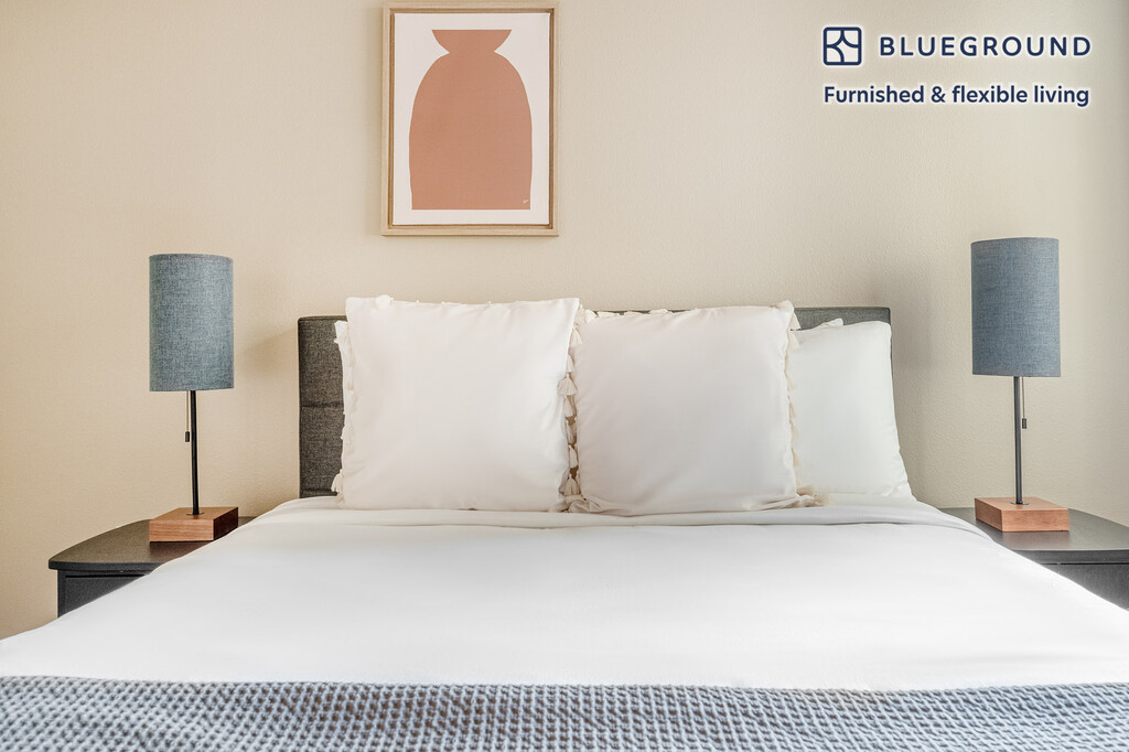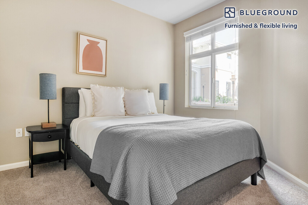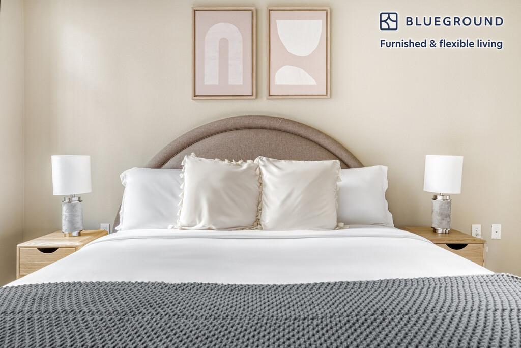 Discover the best of San Jose, with this two bedroom apartment in Tasman and Zanker. It’ll be easy to simply show up and start living in this furnished apartment with its fully equipped kitchen, living room, and our dedicated, on-the-ground support. (ID #SFO743) The advertised rate of $3,190/month is the lowest available price, based on a 11 month(s) and 29 day(s) stay with a move-in date of February 22, 2026. Rates vary depending on the duration of stay, season, and other parameters. For exact pricing and additional pricing components, please visit our website and enter your desired move-in and move-out dates. The rate is applicable when billed upfront; it can be higher if billed in multiple payments. Brokers are welcome to reach out. Were you looking for an unfurnished lease? Try Blueground instead and upgrade from unfurnished to furnished living: - Furnished at rates comparable to unfurnished - No setup or furniture costs - save thousands - Move-in ready - save time, just bring your suitcase Designed with you in mind As with any Blueground apartment, you’ll find a thoughtfully designed space complete with beautiful furniture and a fully equipped kitchen in this two bedroom property. And, thanks to our superior quality mattresses, luxury linens, and towels, you can relax knowing you’ll always feel comfortably at home. When you’re ready for some fun, you can take in the San Jose vibes or bring the entertainment to you with the premium wireless speaker or smart TV. This apartment also offers in-apartment laundry. Sleeping arrangements King Bed, 70.8in/180cm Queen Bed, 63in/160cm Amenities Building amenities unique to this two bedroom apartment include an on-site: - BBQ Area - Dryer - Elevator - Swimming pool - Washing machine - Parking - Pets allowed - Playroom Arrival and ongoing support The entire apartment is yours to enjoy! Throughout your stay, you’ll have access to our Client Experience team through the Blueground App. You can schedule additional cleanings, submit maintenance requests, and view our neighborhood recommendations with just a few taps. We’ll share all details upon confirmation of your stay. Other things to note Building amenities may have an extra cost. This Blueground apartment has flexible lease options, allowing you to book it for one month, a year, or more. Pets are welcome, though weight limits and breed restrictions apply and may incur fees. Parking is offered based on availability and is subject to a fee. We take great pride in ensuring every photo displayed is shot in our own units with our actual furnishings. That said, we regularly refresh our decor and furniture arrangement, which may differ from what’s pictured. [SI]