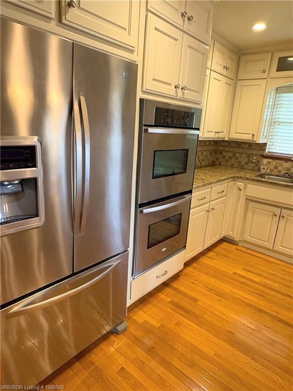 This beautifully updated home for rent in the heart of Fort Smith offers modern comfort and thoughtful design in a quiet cul-de-sac setting. The kitchen features a generous island with seating and storage, double ovens, and large windows that fill the space with natural light. A deck overlooks the privacy-fenced backyard, creating the perfect spot for morning coffee or evening unwinding. Inside, you’ll appreciate the solid hardwood floors throughout, a stunning primary bathroom with marble tile and a roll-in shower, ample storage, and the convenience of a smart thermostat and smart garage door opener. Lawn care is provided, making maintenance easy and stress-free. Every detail has been updated with care, creating a comfortable and inviting place to live.