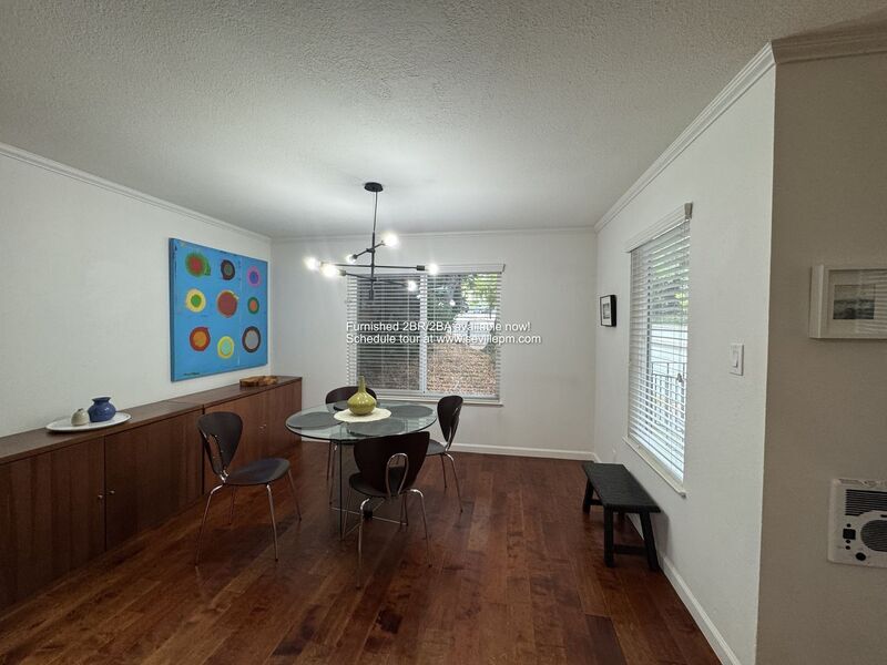 Virtual Tour: $3295 includes all utilities, furniture, and WiFi! 2 Bedrooms, 2 Full Bathrooms Approx. 1177 sf Primary bedroom w/ensuite bathroom, walk-in closet, and balcony Second bedroom w/balcony Updated kitchen w/island and upgraded stainless steel appliances Kitchen appliances include refrigerator, dishwasher, microwave, & gas stove/oven Living Room w/sofa, TV, & lighting Patio w/table & chairs Hardwood floors in living areas & bedrooms Tile flooring in bathrooms & kitchen 2 Private patios/balconies Shared Laundry onsite Off-street parking available - 1 car garage parking Welcome to our beautiful fully furnished 2BR/2BA apartment situated between Lakeshore & Glenview districts in Trestle Glen! This spacious unit features wood floors, a kitchen with an island, and a gas stove/oven for all your cooking needs. The primary bedroom includes a private bathroom and a balcony, perfect for enjoying your morning coffee. With off-street parking and laundry in the building, convenience is at your fingertips. Whether you're looking for a short or long-term rental, this apartment is ready for you to move in now. Located in the Trestle Glen/Crocker Highlands neighborhood and desirable Crocker Highlands School District! Live near Oak Memorial Pool, Paramount Theatre, Grosvenor Corner park, Lakeshore & Glenview shopping districts. Easy access to 580 Freeway and a 5 minutes to Express buses to Downtown Oakland, SF and BART. Amenities: dishwasher, fully furnished, gas stove/oven, off-street parking, hardwood floors, microwave, balcony off primary bedroom, 2 bedrooms, kitchen w/island, 2 full bathrooms, refrigerator included, short or long term rental terms ok, primary bedroom w/private bathroom, living room w/balcony, walk-in closet, approx 1177 sf, laundry in building