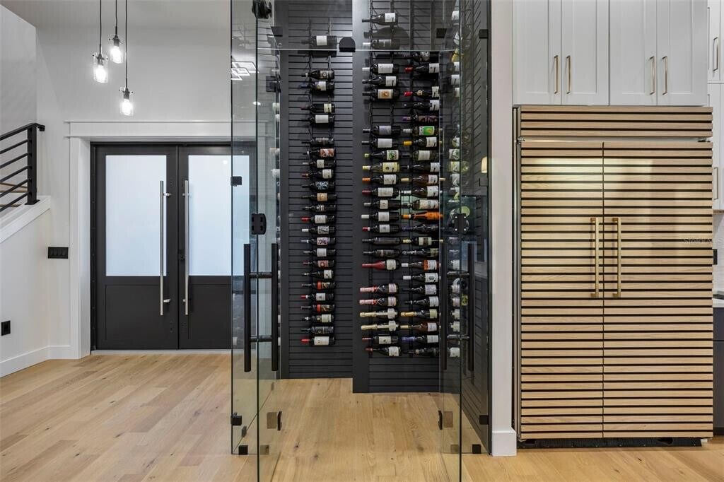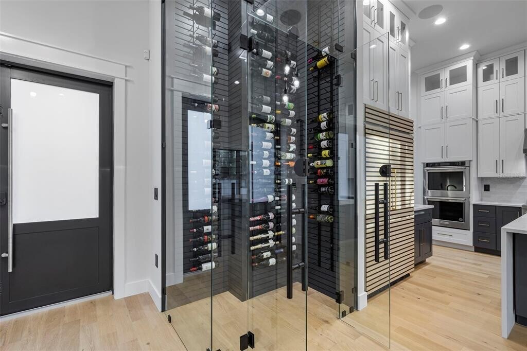 One or more photo(s) has been virtually staged. COMPLETED! Brand-new,two-story block constructed modern home with exceptional craftsmanship built by Soho Builders. This home is located just blocks from Bayshore Boulevard in the Bel Mar neighborhood. The property is in an X flood zone and had no flooding during hurricane Helene and Milton. The house has natural gas from the city of Tampa and an extra connection for future use to supply a whole home generator. Upon entering the home you will notice open 12 ft ceilings with 13' tray ceiling details,white oak engineered hardwood as well as high-end impact rated windows and smooth drywall finish throughout. The first floor showcases an elegant glass enclosed 120 bottle wine room,and the kitchen,with floor to ceiling custom cabinetry,quartz countertops,walk-in pantry,all high end appliances such as a Sub-Zero KitchenAid Refrigerator,Kucht 1200 CFM restaurant grade exhaust hood,Thor beverage cooler,Thor nugget ice maker with built in water filter,KitchenAide dishwasher,KitchenAide 48 Gas Range,KitchenAide built-in double ovens and KitchenAide dual function microwave/air fryer. Just off of the kitchen is the breakfast bar and dining area with a built-in Bosch wifi-enabled coffee maker and wet bar. Additional features on the first floor include the laundry room,a mudroom,outdoor kitchen with grill,full guest bathroom,sauna,and the luxurious primary suite with an office/study just off of the bedroom. The second floor features a loft with wet bar and Thor beverage cooler,second laundry room,media room and additional bedrooms each with ensuites and access to one of the four balconies. Additional upgrades include Dual (2) Tesla/EV chargers with 24' charging cables in the garage,epoxy coated garage floor,enhanced landscaping package,sprinkler system,pre wiring for security cameras,vinyl fence,outdoor shower,and indoor/outdoor speakers. MLS# TB8438004