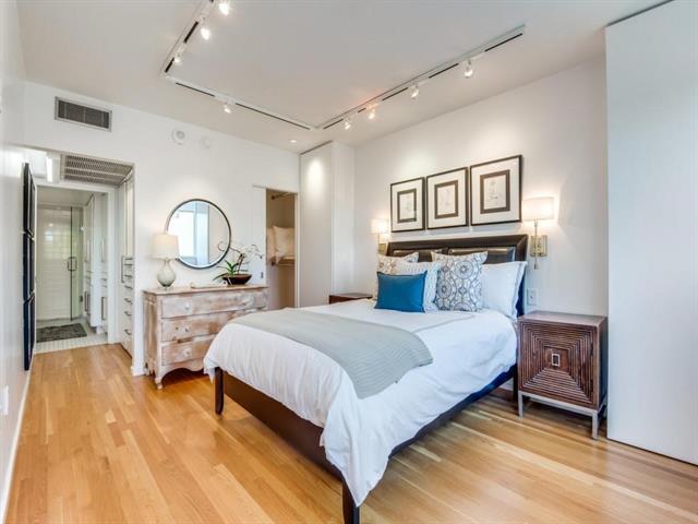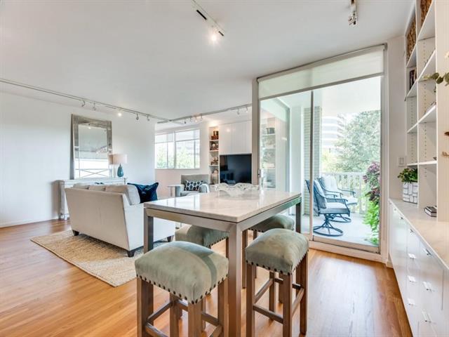 Fully furnished stunning condo with class A service! The front desk is occupied 24-7 with a valet attendant during the day. All in the heart of Dallas at the corner of Turtle Creek & Gilbert. Spectacular mid-century Modern building with spacious open floor plan. Designer touches throughout w wood floors throughout, decorative lighting, custom built-ins, updated spa like bath with an abundance of storage, kitchen offers marble countertops, custom cabinets & Stainless Steel appliances plus one of only 4 units with washer and dryer. Enjoy the stunning 4th floor views from the large terrace overlooking the historic Turtle Creek Blvd. Property amenities include fitness room, pool, concierge with easy access to the Arts District, Uptown, Katy Trail and Downtown, shopping, dining and entertainment.