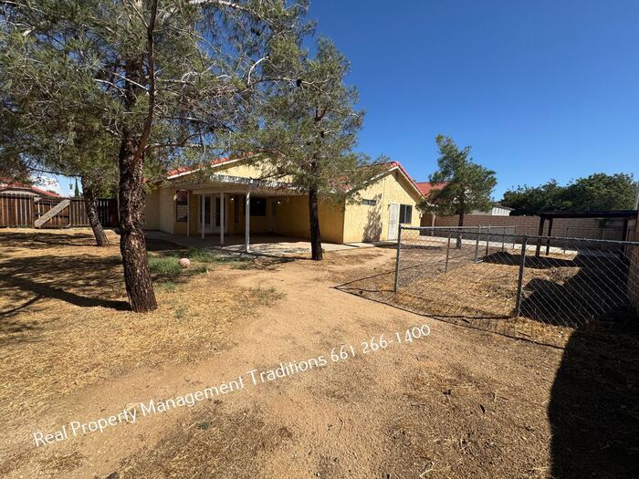 *** Please call us for information on availability, showings and applications processes. *** Cute 3 bedroom, 2 bath home located in East Palmdale. Cozy living room with fireplace, dining room with french doors to large covered patio area. Good sized kitchen with plenty of counter and cupboard space, breakfast bar, Indoor laundry; two car garage; large backyard with dog run; completely covered side area with double gates for additional parking/storage. Washer, dryer and refrigerator available. Small/medium pets allowed; breed restrictions Contact us to schedule a showing.