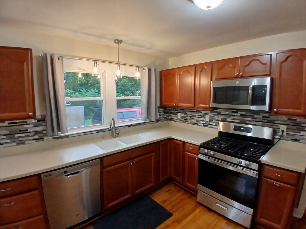 Completely renovated 3 Bed / 1 bath. Hardwood floors throughout, central air, spacious kitchen with new stainless appliances and dishwasher. Big driveway with turnaround can accommodate larger vehicles / rvs / boats. Full basement with laundry hookups. Bedrooms are smaller. Must see. 1 year lease. 3x income, background, credit, and references required. Tenant pays all utilities including water. Please include some information about who would be living there.