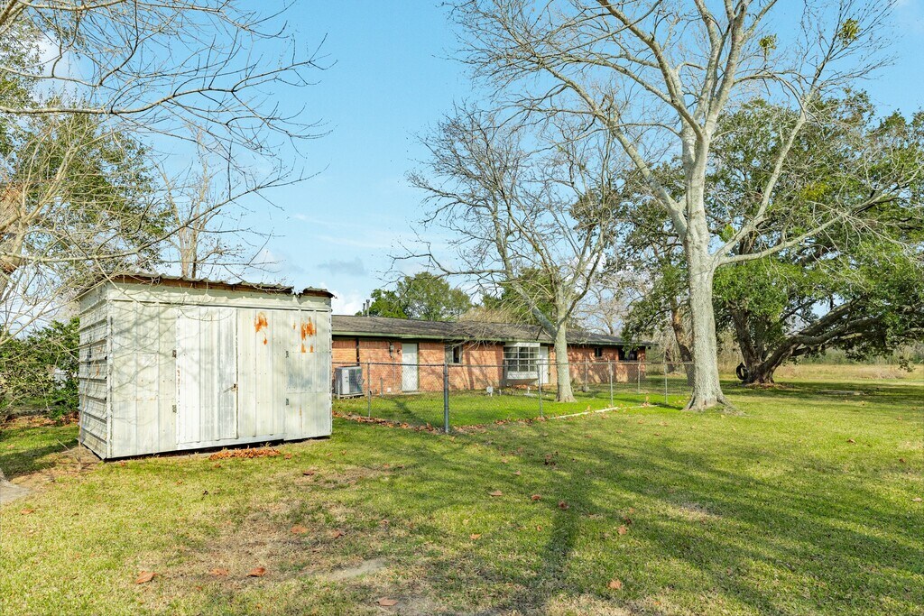 Super access to 288 just S of Hwy 6. 3-2-2 with huge family room and large formal living or ideal study. Built in 1957 so has beautiful hardwood floors,large living areas. House on acreage and has a large storage building. There is a small fenced back yard. Ideal garden! No pets allowed inside due to original wood floors. Heat,HWH and stove gas (propane).Great location in rural Iowa Colony. In sight of 288 but very remote and private. Charming home,Could be re zoned to Commercial. Currently residential. Owner pays for water and security lighting. MLS# 8648066
