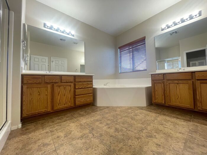 Charming single-story Summerlin home. Kitchen features granite countertops with breakfast bar and dining room. Spacious living room with enlarged patio sliding door. Primary bedroom is separate from secondary bedrooms and features separate walk-in shower and tub, double sinks, and large walk-in closet. Front load washer and dryer located in laundry room. The grass backyard offers a serene oasis, where you can relax and unwind after a long day. As a resident of Summerlin, you will have access to Summerlin parks and pools including the nearby Ridgebrook Park, which includes a tennis court and playground. Close to 215 entrance, Downtown Summerlin, and Red Rock Casino. *?All residents are enrolled in the Resident Benefits Package (RBP) for $39.95/month which includes liability insurance, credit building to help boost the resident’s credit score with timely rent payments, HVAC air filter delivery, move-in concierge service making utility connection and home service setup a breeze during your move-in, our resident rewards program, and much more! Contact us to schedule a showing.