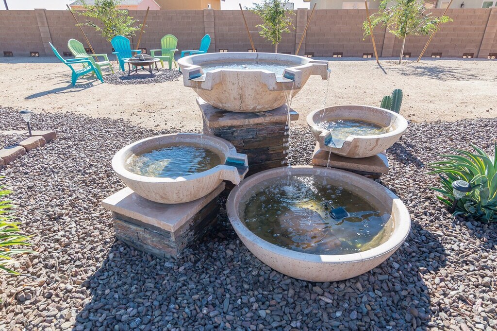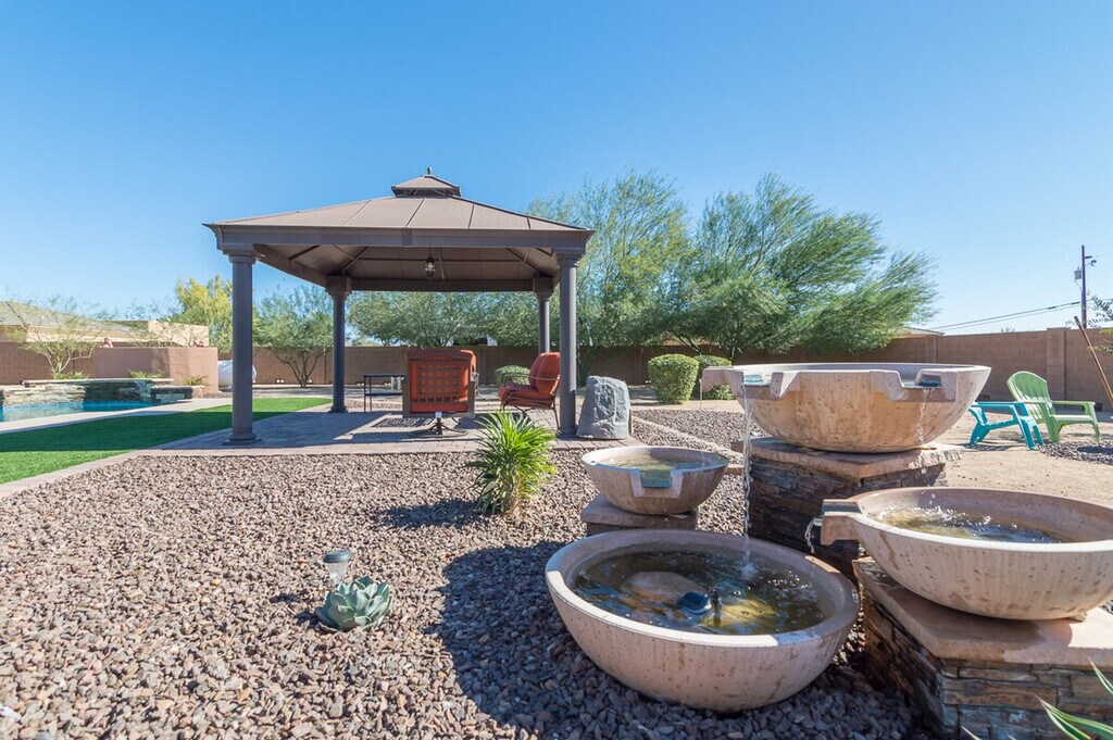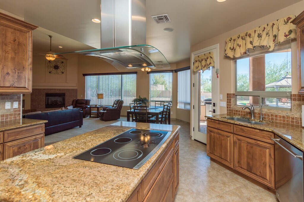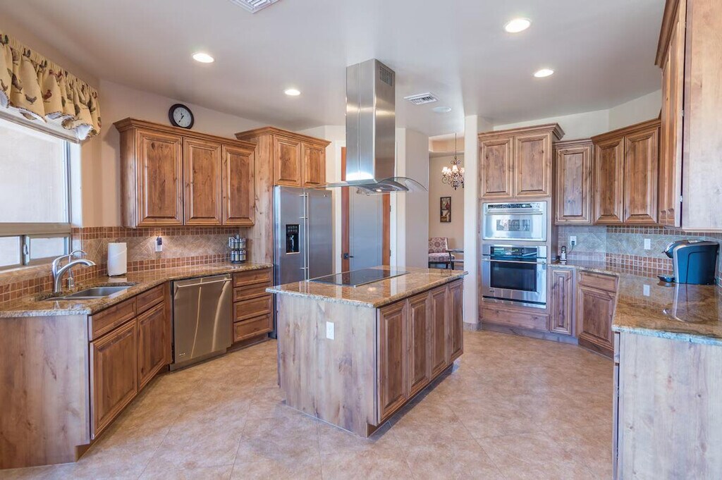 Welcome to this spacious 4-bedroom, 2.5-bathroom single-story home in North Phoenix, offering privacy and comfort on a large lot over an acre. Feel at home with no stairs to climb and enjoy the sparkling heated pool with a waterfall and hot tub. The home features a built-in BBQ island with a bar and fridge outside. Inside, you'll find two king-size beds, two twin beds, and a queen bed, providing comfortable and private areas for rest. The master bedroom offers a king-size bed with a TV, a large attached bath, and a huge walk-in closet. The second bedroom also has a king-size bed and TV, the third bedroom has two twin beds and a TV, and the fourth bedroom has a queen bed. An additional pull-out couch in the living room can accommodate extra guests, and a Pack n' Play is available upon request. The home boasts alluring neutral tones with quality finishes and fixtures throughout, including 12' ceilings, granite counters in the kitchen and baths, 8' solid alder doors and cabinetry, decorator light fixtures and fans, and diagonal tile. Enjoy the huge master closet with custom built-ins, central vacuum, whole house sound system, security system, and water softener. The property includes a 3-car side-entry garage with 10' clearance, RV gates, and a completely walled-in backyard with mountain views, a sparkling heated pool, and a covered patio with pavers. An additional fee is required to heat the pool, which operates off a propane heater. The cost depends on the time of year and desired temperature. The hot tub is available at no extra cost. Dogs are allowed with approval and a non-refundable pet fee, but no cats are permitted. Located in North Phoenix, this home offers easy access to local attractions and amenities. Enjoy the beautiful mountain views and the convenience of nearby shopping, dining, and entertainment options. Guests are liable for any damages caused to the property. A pet fee will be added to your booking for approved dogs, and it is non-refundable. Check-in and check-out times are flexible, and all linens, bath, and pool towels are provided for your convenience. Free Wi-Fi is provided throughout the home, ensuring a seamless connection for work or leisure.