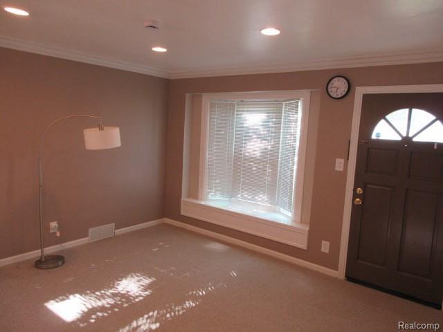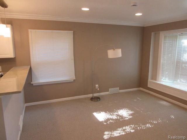 Sharp and clean Royal Oak home across from Memorial Park with brand new carpet, some newer paint, updated bath and kitchen, granite kitchen counters, bay window and canned lighting in living room, large corner lot, fenced back yard, eat in kitchen area along with a place to set up bar stools, over hang off of garage along with a cement patio, your own laundry room so no trips to the laundry mat, 1 pet under 30lbs with a $350 pet fee and NO SMOKING IN HOME please note- back screen door will be installed, appliances included- stove-fridge-dishwasher-disposal-washer and dryer, immediate occupancy. 1 month rent. 1.5 month security deposit. $150 cleaning fee. $50 application fee. renter’s insurance required.