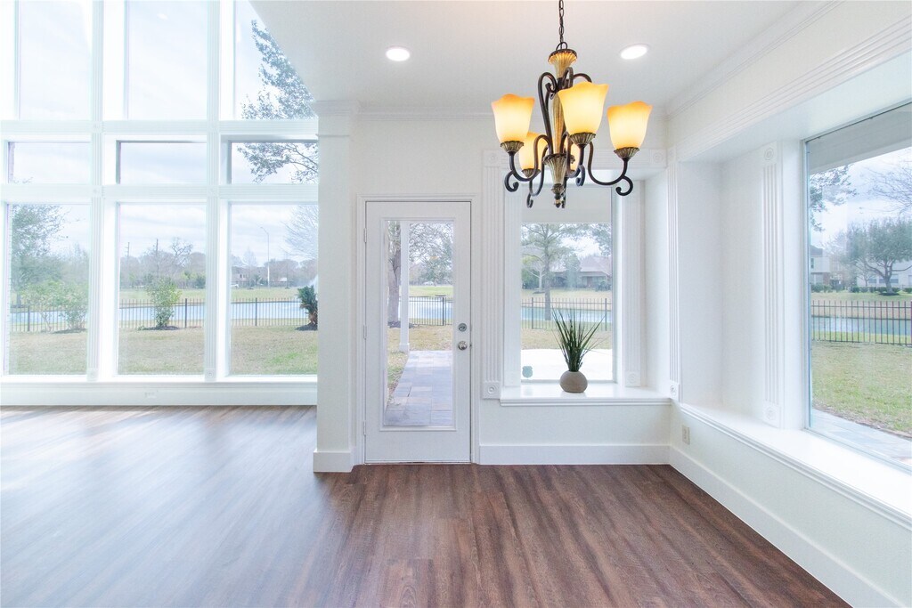 Experience refined waterfront living in this breathtaking Perry Homes estate,set among tranquil lakes and mature trees beside Black Hawk Country Club and Golf Course. Floor-to-ceiling windows in the living room,primary suite,and gourmet kitchen showcase sweeping lake views and fill the home with natural light. An elegant open-concept design features crown molding,custom wood trim,a dramatic chandelier,and a chef’s kitchen with 42-inch wood cabinetry,wine rack,and LED lighting. Enjoy a covered patio and expansive backyard ideal for entertaining or quiet relaxation. Located in an exclusive gated community with a resort-style pool and beautiful clubhouse,and zoned to highly rated schools from elementary through high school. Luxury upgrades include fresh paint,a six-zone sprinkler system,automatic-start fireplace,and a spa-style jetted MLS# 82970947