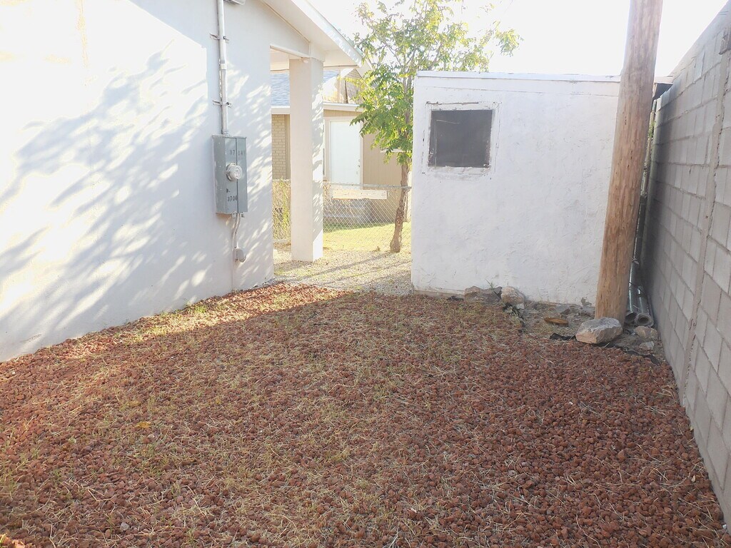 Cozy home located in Central El Paso,near downtown,TTUHSC and Fort Bliss. The home has ceramic floors,shutters,laundry utility room with washer/dry hookups; also has few upgrades through out the home,refrigerated a/c unit,galley style kitchen with new appliances: refrigerator and electric stove. Home has above space storage in the 2nd bedroom and a car pad. Small pets are OK!
