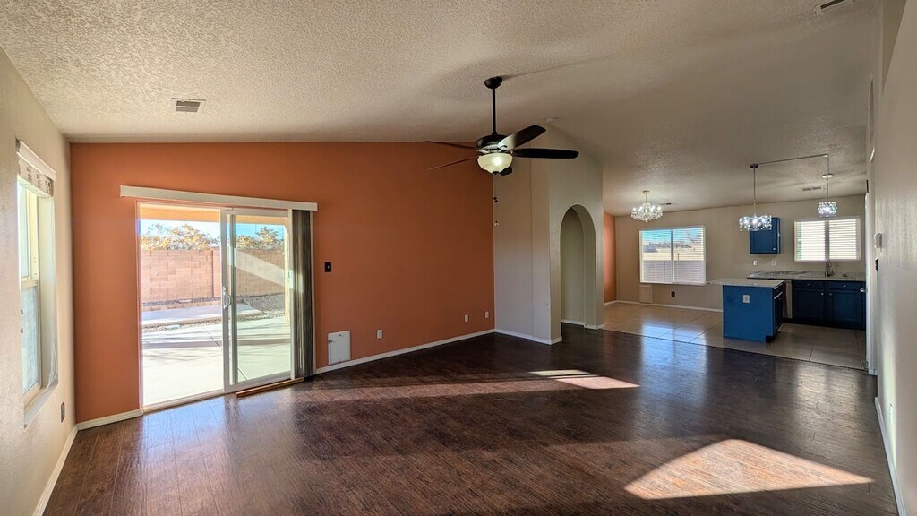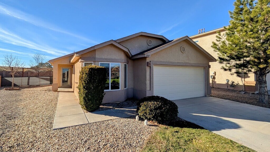 Well-maintained 4 bedroom, 2 bathroom single-story home located in the desirable Northern Meadows community of Rio Rancho. This 1,619 sq ft home features an open-concept layout with a bright living area and an updated kitchen offering granite countertops, stainless steel appliances, a kitchen island, and pantry The primary suite includes a walk-in closet and private full bathroom with dual sinks. Three additional bedrooms provide flexible space for guests, home office, or hobbies. Enjoy refrigerated air, central heating, and a finished attached 2-car garage. Low-maintenance xeriscape landscaping, automatic sprinklers, a walled backyard, and a covered patio make outdoor living easy. $2200/rent $2200/deposit $50 application fee (online applications only) cats and small dogs permitted. Limit 3 pets. $400 non refundable fee per pet due at move in. Tenant pays ALL utilities Text or call for a showing Keyway Properties Inc