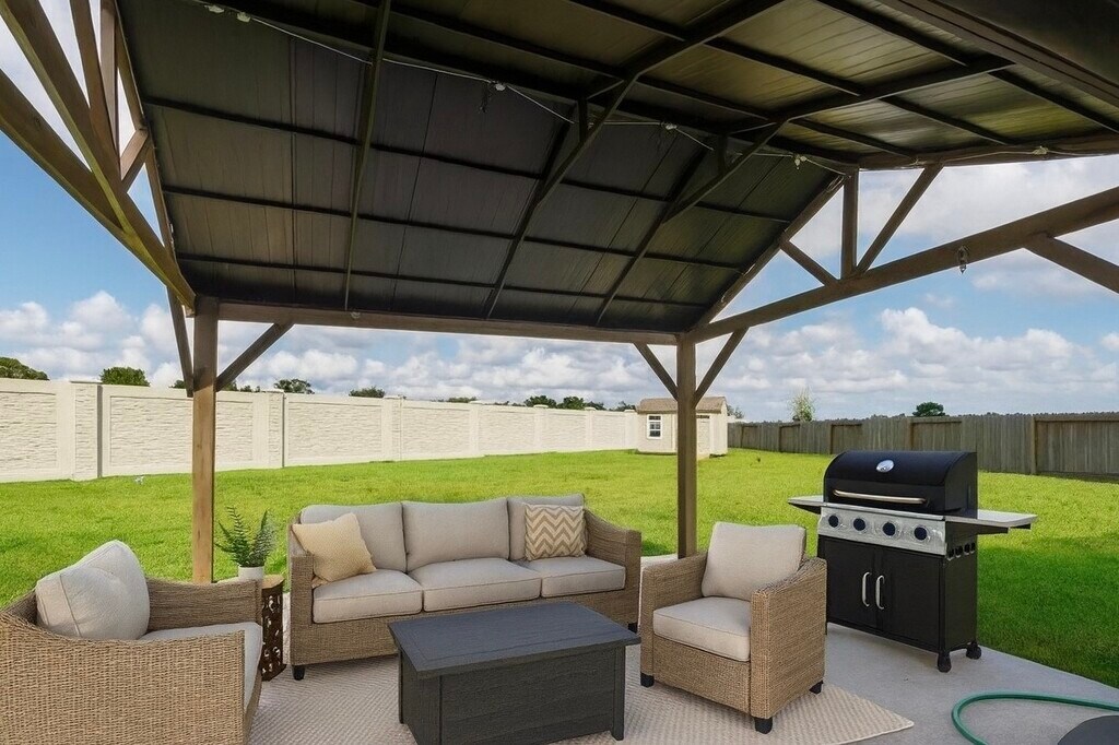 Stunning 2-story home designed for style and comfort! This spacious property offers 4 bedrooms,2.5 bathrooms,a study,game room,and a 2-car garage. Step inside to soaring open-to-below ceilings and a sleek metal stair railing overlooking the family room and kitchen. The open concept layout makes entertaining easy with the kitchen flowing seamlessly into the dining and living areas. The primary suite is conveniently located downstairs with a spa-like extended shower and a huge walk-in closet. Outdoor living is a highlight with a rear covered patio,a beautiful gazebo,and a storage shed. Water softener included. No back neighbors with a park directly behind the home for privacy and views. All appliances convey—including refrigerator,washer,and dryer. Energy-smart features include a tankless gas water heater. Modern finishes throughout make this home the perfect move-in ready choice.New sprinkler system! MLS# 86832352