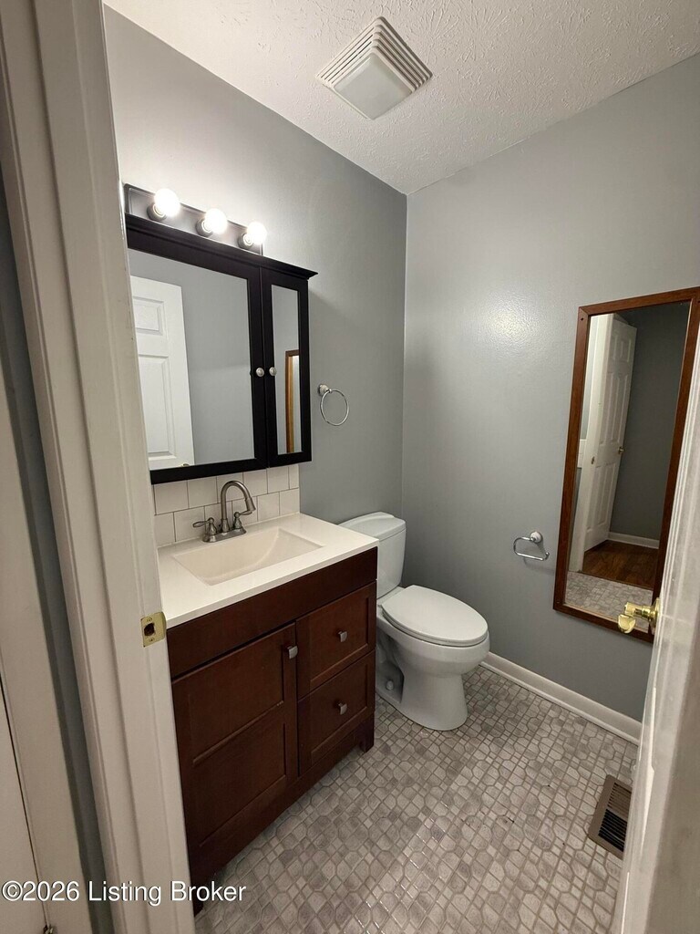 Well-maintained and thoughtfully updated,this 3-bedroom home with an additional open office or dining space is located in the desirable Watterson Lea neighborhood in the heart of Jeffersontown. The flexible layout allows the extra space to function perfectly as a home office,dining area,or bonus living space,ideal for professionals or remote workers. The home features hardwood flooring,neutral finishes throughout,and a functional eat-in kitchen with ample cabinet space. The primary bedroom includes a private half bathroom,complemented by a full hall bath. A convenient laundry area is located near the rear entry. Central air and forced-air heat provide year-round comfort,and the home has been recently reinsulated for improved energy efficiency and lower utility costs Well-maintained and thoughtfully updated,this 3-bedroom home with an additional open office or dining space is located in the desirable Watterson Lea neighborhood in the heart of Jeffersontown. The flexible layout allows the extra space to function perfectly as a home office,dining area,or bonus living space,ideal for professionals or remote workers. The home features hardwood flooring,neutral finishes throughout,and a functional eat-in kitchen with ample cabinet space. The primary bedroom includes a private half bathroom,complemented by a full hall bath. A convenient laundry area is located near the rear entry. Central air and forced-air heat provide year-round comfort,and the home has been recently reinsulated for improved energy efficiency and lower utility costs. Tenant is responsible for all utilities.