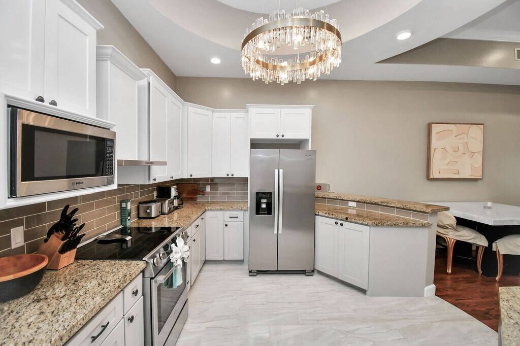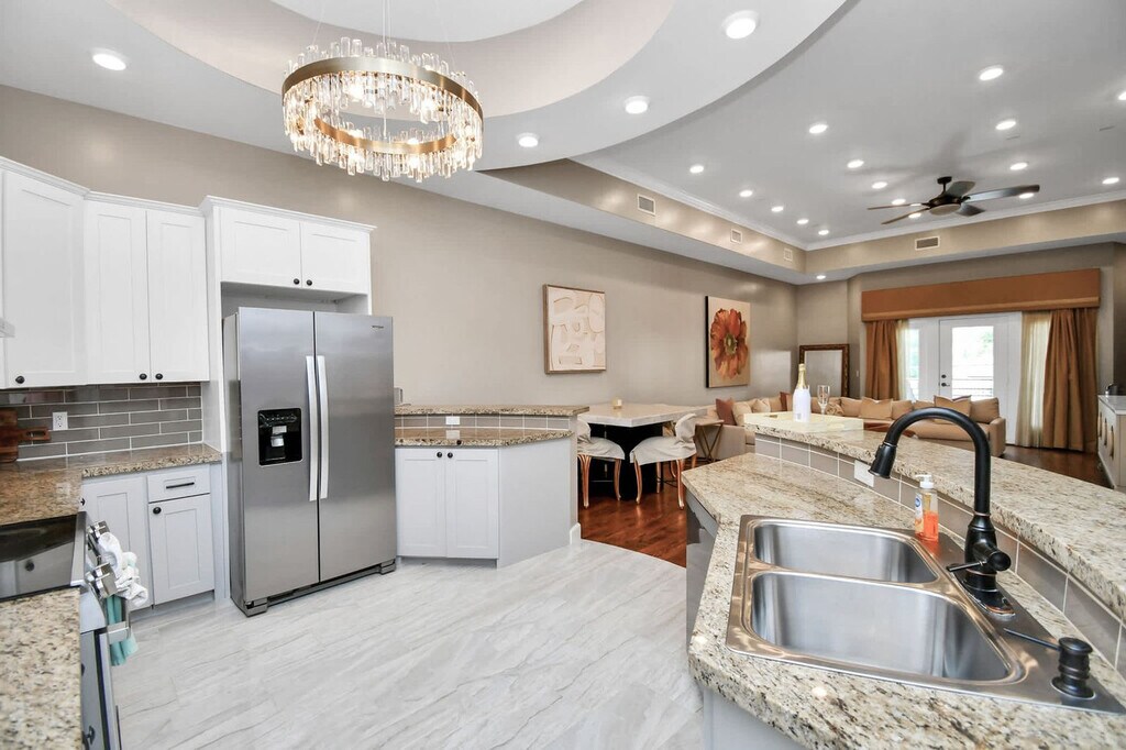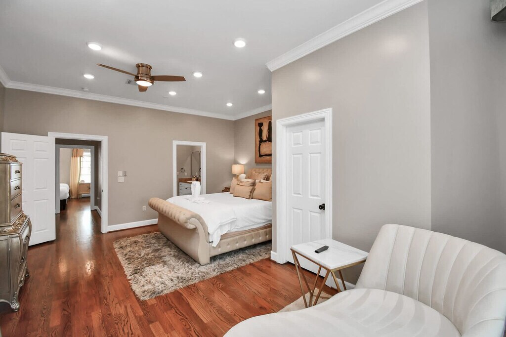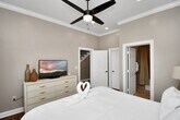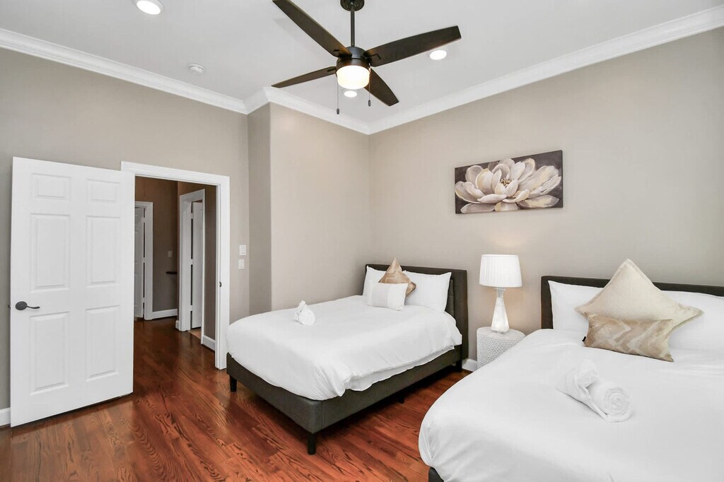 Feel at home in this elegant 3-bedroom, 3.5-bathroom retreat in Houston's vibrant, art-inspired EaDo district. This property offers nearly 3000 square feet of refined living space sprawled across three levels. This impeccably maintained home blends elegance with exceptional convenience. The second level features soaring vaulted ceilings and an oversized plush sectional. The uniquely designed modern kitchen and dedicated laundry room include high-end Samsung washer and dryer units. Enjoy high-speed Wi-Fi and premium Xfinity cable for entertainment. This property includes a private two-car garage. A Snoo Bassinet and high-chair are available upon request. Perfectly situated, this urban retreat is just minutes from downtown, the Medical Center, Toyota Center, Dynamo Stadium, Minute Maid Park, and the University of Houston. You'll be surrounded by top nightlife venues, such as Space, Sekai, and Chapman & Kirby, and just a few blocks away from local hot spots. Explore nearby attractions such as the Houston Zoo, Space Center Houston, the Houston Museum District, Buffalo Bayou Park, and The Menil Collection. This property is located in a gated community. [SI]
