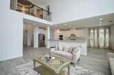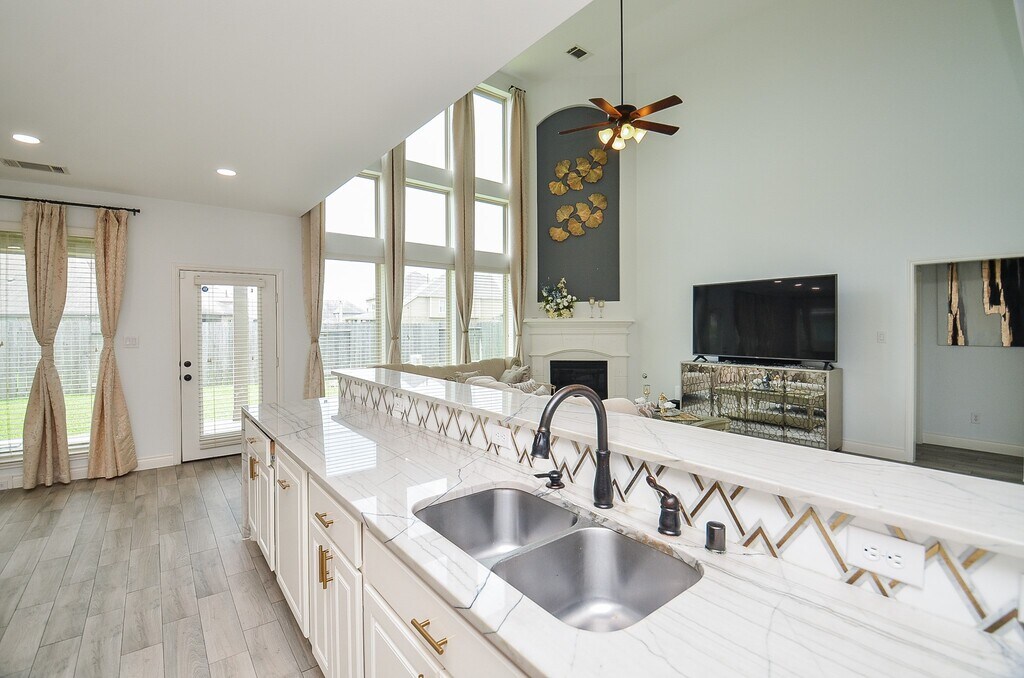 Step into elegance with this stunning 2-story Perry Home featuring 4 bedrooms and 3.5 baths. The grand foyer welcomes you with recent flooring and a striking chandelier. The formal living/study boasts 20-ft ceilings and abundant natural light. Floor-to-ceiling windows in the living room offer serene views. The chef-style kitchen impresses with quartz waterfall countertops,sleek backsplash,and stainless steel appliances including a gas cooktop. The primary suite offers a spa-like bath with dual sinks,vanity,soaking tub,separate shower,and a spacious walk-in closet. A downstairs secondary bedroom includes a private ensuite bath—ideal for guests. Upstairs,find 2 bedrooms,a shared bath,a game room,and a media room. Outside,the covered patio invites relaxing evenings or lively gatherings. Don’t miss this exceptional home—schedule your private showing today! MLS# 61487163