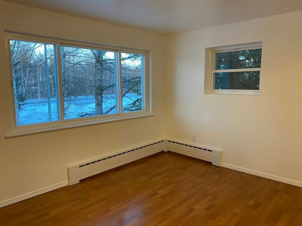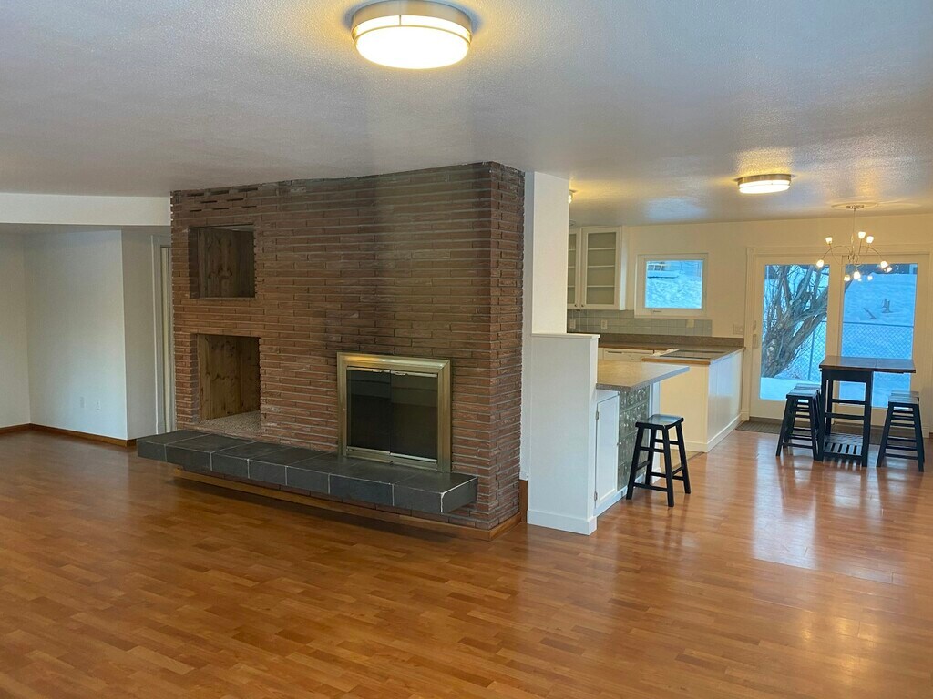Remodeled second-level unit of a modern duplex only 3min from the airport, Lake Hood seaplane base, Kincaid Park (GREAT biking and cross-country skiing!), and countless other attractions. The Anchorage trail system is literally at the end of the driveway and you are only 1 block from Delong Lake for fishing and evening walks. Cozy with a wood burning fireplace, tons of natural light from sound-proof triple pane windows, laminate flooring and new paint! This unit is beautifully updated throughout and it shares a massive 2 car garage with the other unit; the whole right half of the garage is yours! -1280sq ft for 2 bedrooms and 1 bathroom PLUS 740sq ft shared garage and storage area -Room in the garage for 1 vehicle with 2 additional parking spaces outside -W/D shared with the other unit -Available to move in immediately -Exterior/unit totally remodeled in 2020, great curb appeal -Min 6 month lease, no smoking, pets on approval dogs under 60lbs, additional $20/month pet rent per pet. -Tenants responsible trash services, but all other utilities included! Average of $300/month saved! -Tenant only paying out of pocket for individual internet/TV and trash -Monthly income must be 3x rent Common storage area - tenant responsible for securing personal property in garage, but Unit 2 gets to utilize entire laundry room storage area Cost includes all utilities! Tenant only pays for internet and trash services Unit 1 tenants do not have access to the over-garage deck Must make 3x rent per month in monthly income No smokers No more than 2 vehicles may be parked outside at any given time Terms negotiable