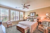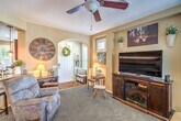 Welcome to this beautifully upgraded 2-bed/2-bath home with 1,592 sqft of single-level living, located in the desirable, gated age-restricted community of Ardiente. Feat. a gated courtyard with blooming flowers, this home is charming with exceptional curb appeal. Step inside to find real hardwood floors, shutters throughout,& a flexible den/office space. Open-concept kitchen boasts granite countertops, a spacious island, stainless steel appliances, & R/O system-perfect for the modern homeowner. The spacious primary suite includes,walk-in closet, dual vanities,& beautifully tiled shower. Add. feat. include ceiling fans in every room, solar panels, an extra long 2-car garage w/driveway parking, and a private, walled backyard with a large covered patio—ideal for relaxing or entertaining. Located in the vibrant community of Ardiente, residents enjoy resort-style amenities including a clubhouse, fitness center, pool, tennis courts, putting green, trails, social activities & more!