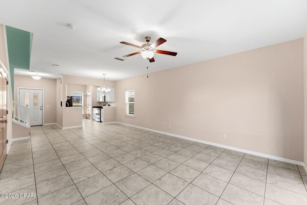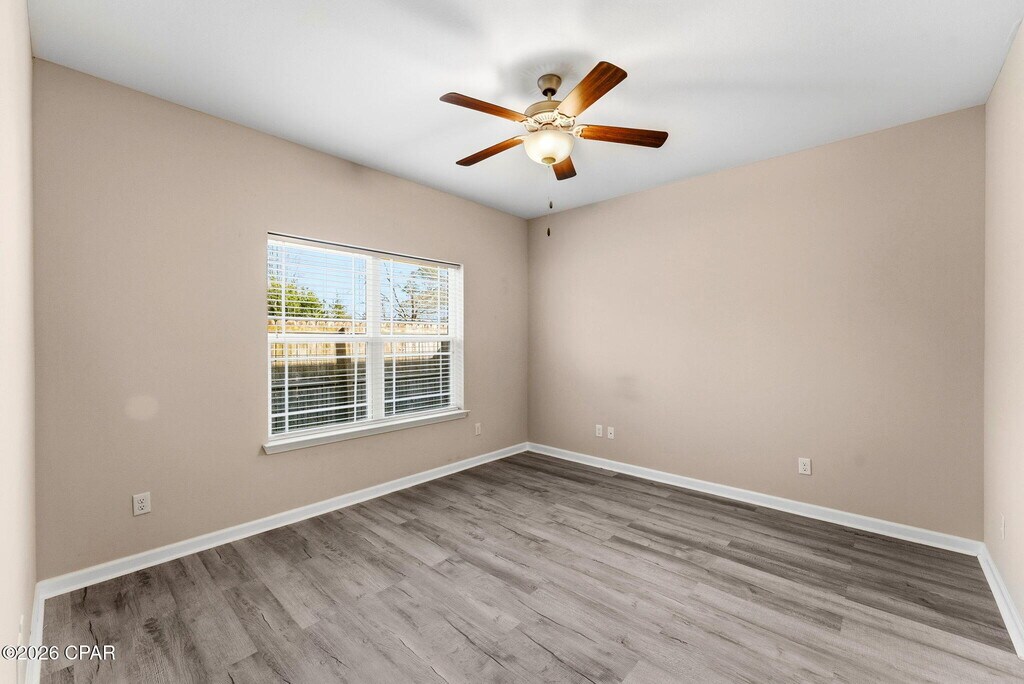 Spacious 5-bedroom, 3-bath single-family home ideally located just off North Lagoon Drive in Panama City Beach. This well-designed home features an open-concept living plan with a kitchen that overlooks the main living area--perfect for entertaining and everyday living. One bedroom and full bath are conveniently located downstairs, while the remaining four bedrooms are situated upstairs for added privacy. Additional highlights include a single-car garage and a fenced backyard. Enjoy access to the community pool, available to both owners and tenants.