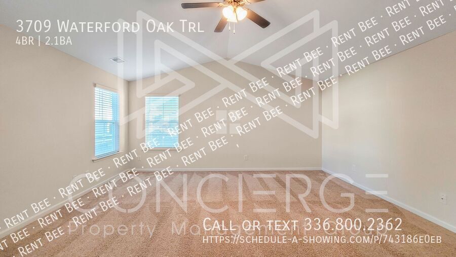Calling all executives that work from home and are looking for a dedicated office space in a MASSIVE home to rent in High Point. You should definitely visit 3709 Village Springs Ct which is located in the Southwest school district. This home is located in the Waterford Springs community where residents enjoy living minutes away from various shopping centers off Skeet Club Rd. There are several restaurants and grocery stores near this property as well as the Regal Cinemas Palladium 14 and IMAX Movies. Waterford Springs has a proximity to the time-saving HWY 840 Bypass as well as I-40, I-74, I-73, I-85, and HWY 68 providing convenient access to major medical centers, such as: Cone Health, Wake Forest Baptist Medical Center / Forsyth Medical Center / Brenner's Children's Hospital, VA hospitals, as well as shopping, entertainment centers, universities, and sports centers. This home has 4 bedrooms and 2.5 baths with a massive master bedroom and an elegant kitchen. The kitchen has granite countertops, beautiful backsplash and modern appliances. The loft area on the second floor serves as an amazing gaming room. The backyard has an extended concrete porch that serves as an entertainment hub with great privacy. You have to see it to believe it All tenants will be enrolled in the Resident Benefits Package (RBP) for $59.00/month which includes liability insurance, credit building to help boost the resident's credit score with timely rent payments, up to $1M Identity Theft Protection, HVAC air filter delivery, on-demand pest control and move in concierge services which brings convenience to set-up your utilities. Rent Bee is an Equal Housing Lessor under the FHA. Applicable local, state and federal laws may apply. Lease terms and conditions apply. This is not an offer to rent. You must submit additional information for review and approval. Listed features may not be accurate; confirm details with a leasing representative. BEWARE OF RENTAL SCAMS: Rent Bee exclusively manages our homes (no third-party management). We do not lease homes through Craigslist, SocialServe, LetGo, Facebook Marketplace or other classified advertising services. We will never ask for wire transfers, cash apps like Venmo, Zelle, CashApp PayPal, or any other transferring method to collect funds. Listing photos are provided to help you select a home; all photos shown are for representative and illustrative purposes only but may not be exact. Colors and photo size may vary based on different resolutions, hue, brightness, contrast, or other photo variations. Photos on websites may be modified, changed, or amended at any time.