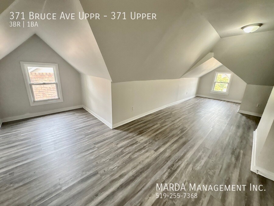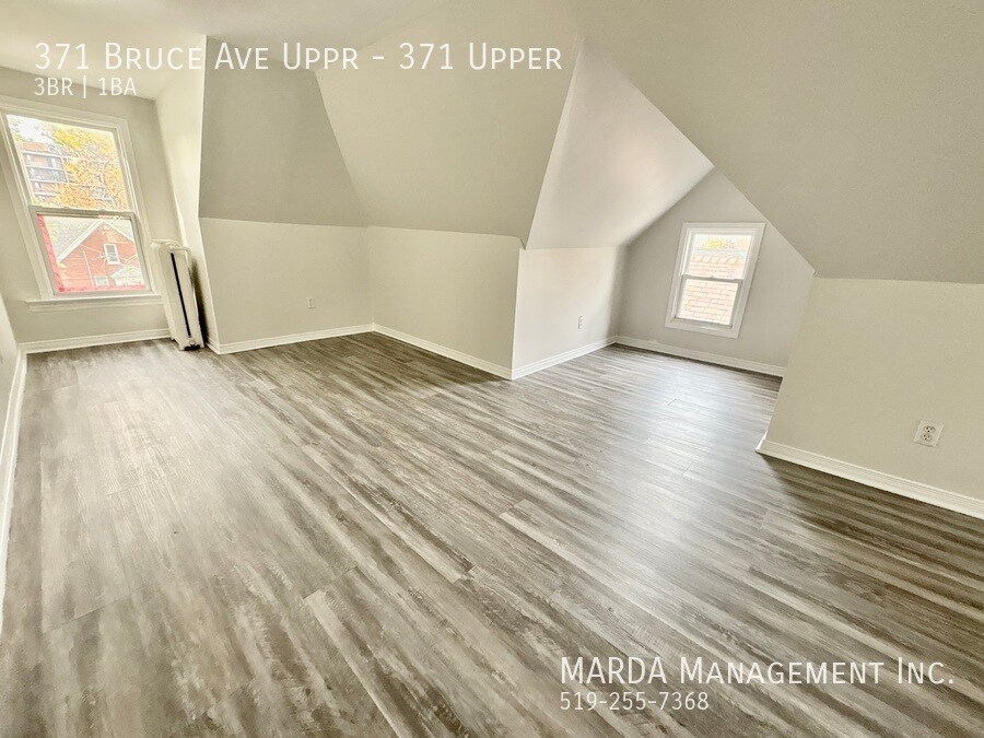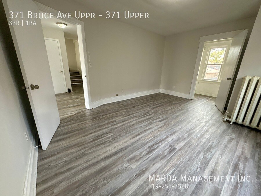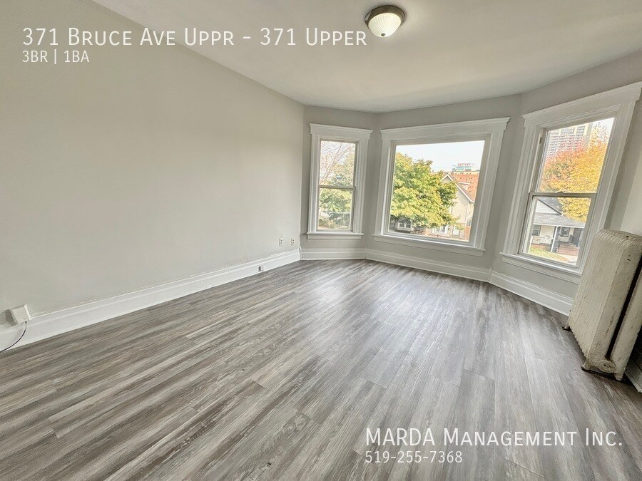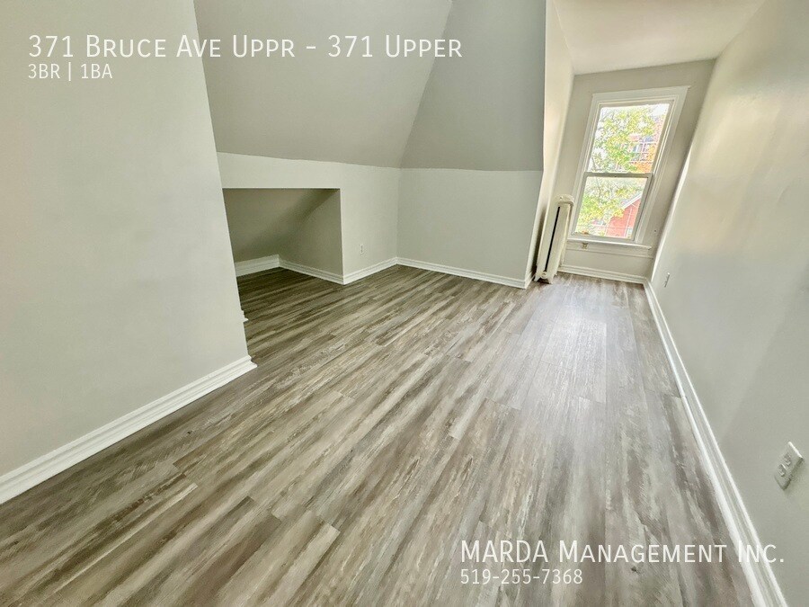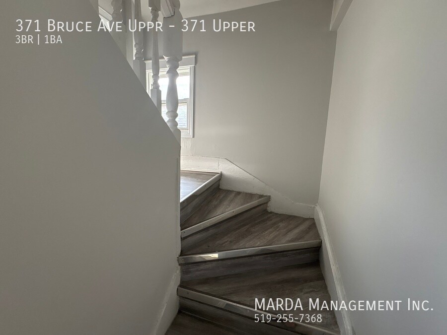 Welcome to 371 Bruce Upper! This spacious and newly updated unit offers privacy and convenience with its own entrances. The bright and airy living and dining area is filled with natural light from large windows. The first bedroom features a large window and ample closet space, while two additional bedrooms upstairs offer versatility, perfect for an office or extra living space. The updated kitchen includes a fridge and oven stovetop, with easy access from the back entrance. The bathroom features a full shower/tub combo and extra storage. Shared laundry is available in the basement. Located near St. Clair College Downtown Campus and the University of Windsor, with bus stops, Tim Hortons, LCBO, and more nearby. Tenants are responsible for hydro. First and last month's rent, a credit check, and a one-year lease are required. Professionally managed by MARDA Management with 24/7 maintenance and convenient rent payment options. Call MARDA MANAGEMENT today at or email to schedule your viewing! Video Tour: Coin Operated Laundry Freshly Painted Laminate Flooring No Smoking Allowed Pet Friendly