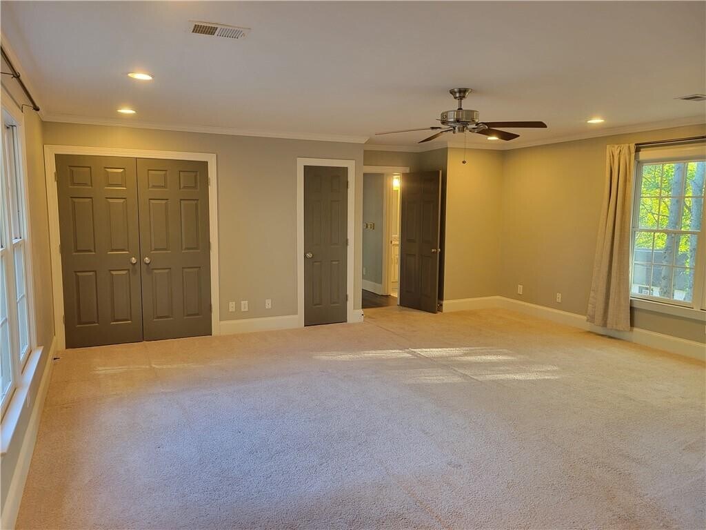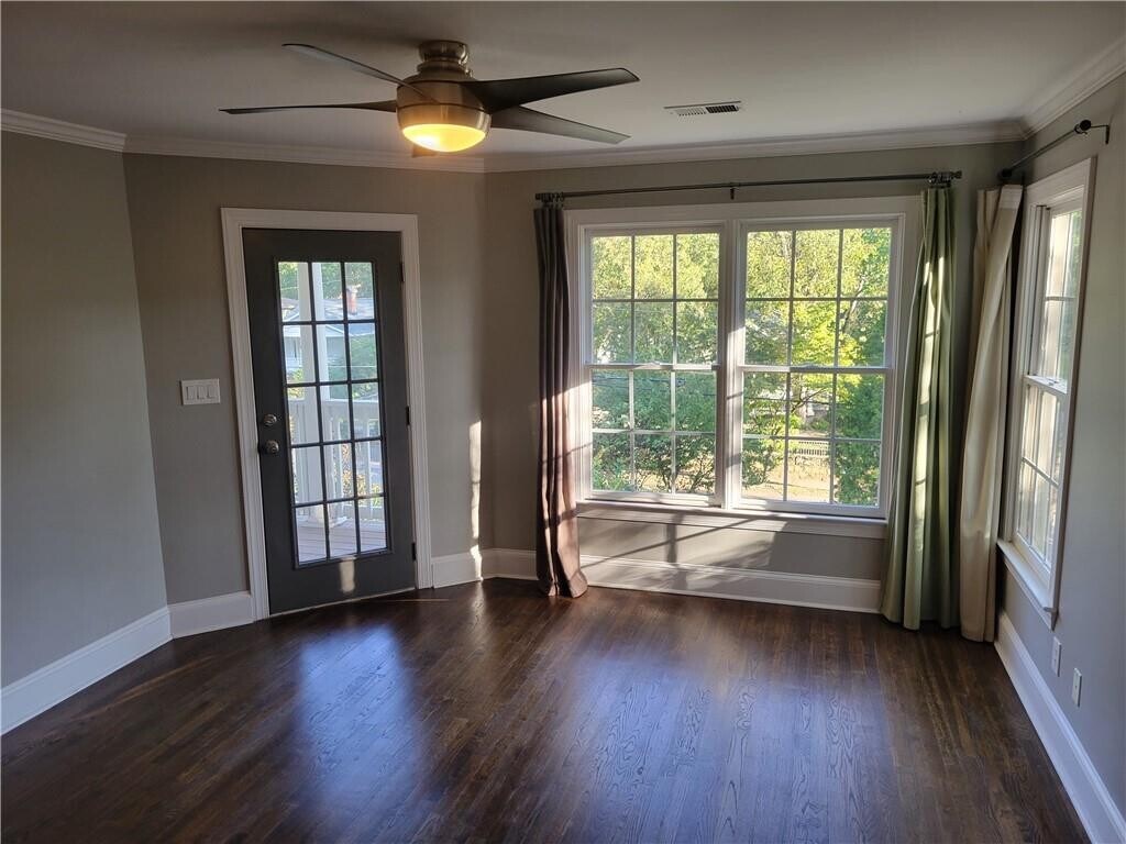 Huge,gorgeous home on corner lot in highly desirable Grant Park neighborhood. Enter the home from the covered front porch with double fans overlooking the immaculately landscaped front yard. High ceilings throughout the main level which includes a well-appointed kitchen with quartz countertops,and stainless steel appliances. Family room for relaxing in the front and sprawling living room with tons of natural light for entertaining in the back. Living room area also has a powder room and access to a relaxing deck area. Upstairs,the enormous primary bedroom has custom built-ins for an upgraded closet experience,bathroom with quartz countertops,double vanities,and a glassed-in party shower. Guest/In-law suite upstairs with full kitchen,its own bathroom,and walk-in closet. Minor bedrooms both have access to the walk-out balcony overlooking the front yard. EV charger in garage. This home accepts pets on a case by case basis with a non-refundable pet fee. Available now!