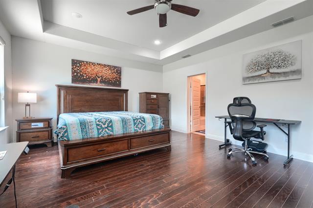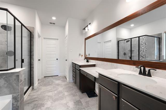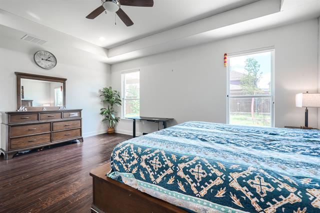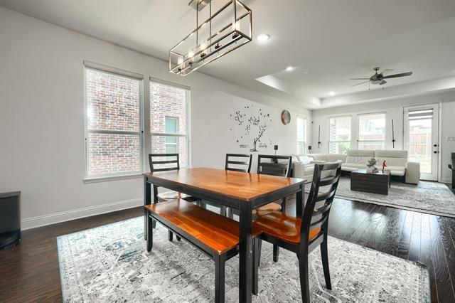 Price Improved!! Motivated Landlord! Experience the perfect harmony of sophistication and functionality in this beautifully designed 5-bedroom with an office, 3.5-bathroom home nestled in a quiet Prosper neighborhood. With its clean, modern lines and thoughtfully crafted floor plan, this residence offers both style and comfort for today's discerning homeowner. Step into an airy, light-filled interior where two bedrooms and two full baths are conveniently located on the main level, ideal for multigenerational living or guest accommodations. A dedicated home office and powder bath add flexibility and convenience. Upstairs, you'll find two additional bedrooms, a spacious game room, and a media room perfect for family fun and entertainment. The sleek, modern kitchen features white cabinetry, quartz countertops, and a functional layout that opens seamlessly to the living room and extended covered patio, ideal for indoor-outdoor entertaining. The private interior lot offers both tranquility and space for gatherings. Located within the highly rated Prosper ISD and close to community amenities like a resort-style pool, this home is also just minutes from the Dallas North Tollway, providing quick access to shopping, dining, and commuting routes.