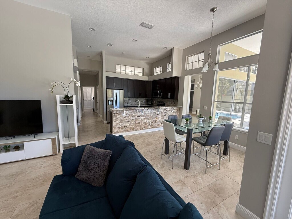 Welcome to your dream home at 3710 Spear Point Drive, nestled in the prestigious gated community of Hunters Isle within Hunters Creek, Orlando. This stunning 4-bedroom, 3-bathroom house offers the perfect blend of luxury and comfort, boasting high-end finishes throughout. The spacious kitchen is a chef's delight, featuring stainless steel appliances and elegant granite countertops that flow seamlessly into the bathrooms, adding a touch of sophistication to your everyday living. Step outside to your private oasis with a fully screen-enclosed pool, perfect for relaxation and entertainment, all while enjoying breathtaking lake views. The home\'s spacious layout provides ample room for family, guests, or even a home office. Located right next to Osprey Park, residents can easily access tennis courts, soccer fields, baseball diamonds, and playgrounds, making it an ideal spot for active families. Don't miss this opportunity to enjoy the unparalleled living experience offered by this beautiful property in one of Orlando's most desirable neighborhoods.