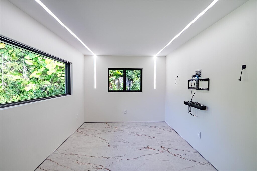 3711 Battersea Rd is new 2 bedroom/2 bathroom house in Coconut Grove available for rent. This house has been thoughtfully designed with modern fixtures and minimalist, sleek features. The house was just fully renovated with brand new appliances. The house has porcelain flooring throughout with sleek wood cabinetry and flush door interiors. The front door opens into a spacious living room, equipped with a Sonos surround sound system and Smart home system controlled by iPad. The kitchen has a large kitchen island and a wine cellar with all brand new appliances: refrigerator, oven, stove, microwave, dishwasher, sink. There are two bedrooms, each with large closet spaces and windows. The bathrooms are equipped with smart toilets and marble showers. There is a large garage with tall ceilings with ample space for additional storage, as well as a washer and dryer. In addition to the garage, there is also a driveway for additional parking. Finally, there is a beautiful and expansive backyard patio with artificial turf, perfect for entertaining.