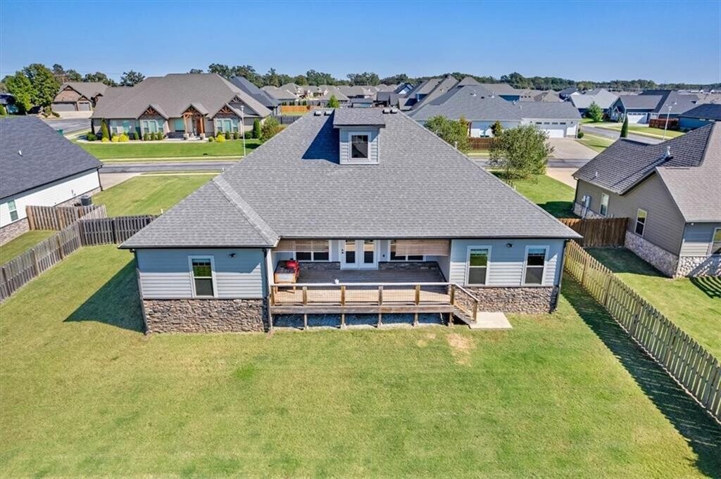 Welcome to this stunning contemporary home in Big Sky Subdivision! Seller paid home warranty, and a preferred lender credit for qualified buyers. This 4-bedroom, 3-bath home plus office features a split floor plan, open layout, and modern finishes. The gourmet kitchen boasts granite countertops, a gas cooktop, built-in appliances, and a large pantry. Enjoy smart home technology, LED lighting, and a gas fireplace. The primary suite has a luxurious bath with a soaking tub, walk-in shower, and oversized closet. Outside, a covered patio overlooks a fenced backyard—perfect for entertaining. Additional features include a 3-car garage with EV charger, central vacuum, on-demand gas water heater, and energy-efficient windows. Located 10 minutes from the Walmart home office and downtown Bentonville. Also listed for sale MLS #1324764. MLS# 1330175