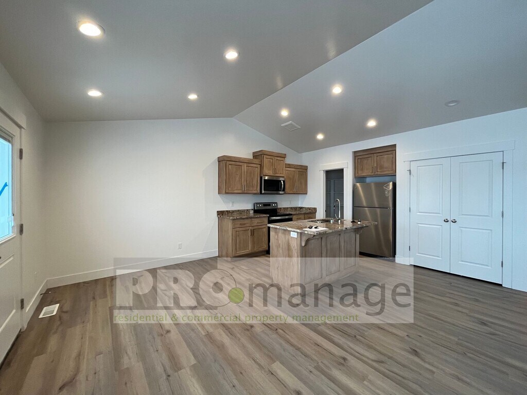 Spacious 3 bed, 2 bath town home with an attached 2-car garage. Tenants are responsible for paying all utilities to Intermountain Gas, Rocky Mountain Power, Falls Water, and garbage service of choice. Tenants will pay a monthly $32 utility reimbursement fee for sewer charges. Owner handles the yard care. Security deposit includes a non-refundable $100 lease initiation fee. *Coordinates to property (some maps won't pull up this address because it is new construction): 43°32'59.9"N 111°57'33.8"W *Driving directions: Heading North on Ammon Rd. turn right onto Yellowstone Highway. Turn left onto Rammell Rd. (U.S. Forestry Building). Following Rammell Rd around the bend, turn right (north) onto Freedom Rd. Turn right at the traffic circle and then turn left onto Red Shirt Dr. Cherry Ln is directly ahead.
