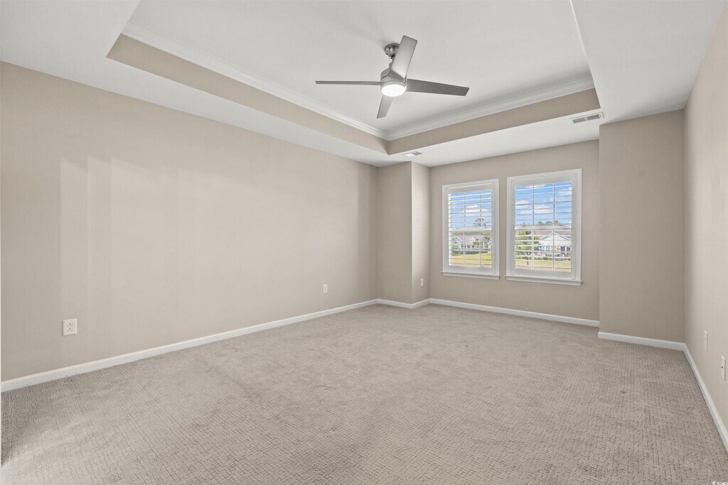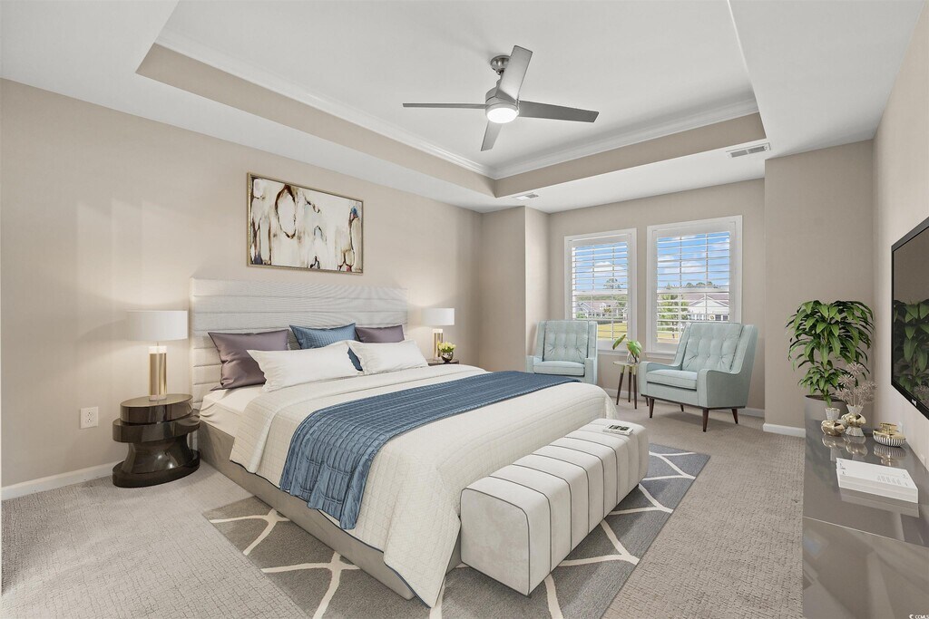 Great location,less than 10 minutes to the beach! Come check out this beautiful 3-bedroom,2-bathroom home nestled in the pristine relatively small community of Park Pointe,where the streets are lined with palm trees. This home has plantation shutters on all windows,even on the door in the back. Home is equipped with an irrigation system and gutters. The front door opens to a wide foyer giving a grand appearance which leads you to an open floor plan along the back of the house. The vaulted ceiling gives a grand appearance and the many windows along the back bring in a lot of natural light. The kitchen has bar height seating at the island,walk in pantry,and SS appliances with a gas range. There is a large dining area just off the kitchen which can comfortably seat 6-8 people. The large master bedroom has a tray ceiling and,again,windows for plenty of natural light. The en suite has 2 sinks,private toilet area,walk in shower,and a walk-in closet. The backyard is quiet with an expansive view of green. It has a lovely covered porch,and also an open patio. The location is fantastic. Walk within minutes to the North Myrtle Beach Park & Sports Complex (which has walking trails,dog parks,a lake,amphitheater,ball fields,etc). Quick and easy access to the beach,restaurants,golf courses and all that North Myrtle Beach and Myrtle Beach has to offer.