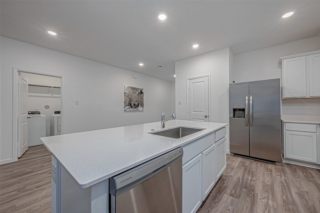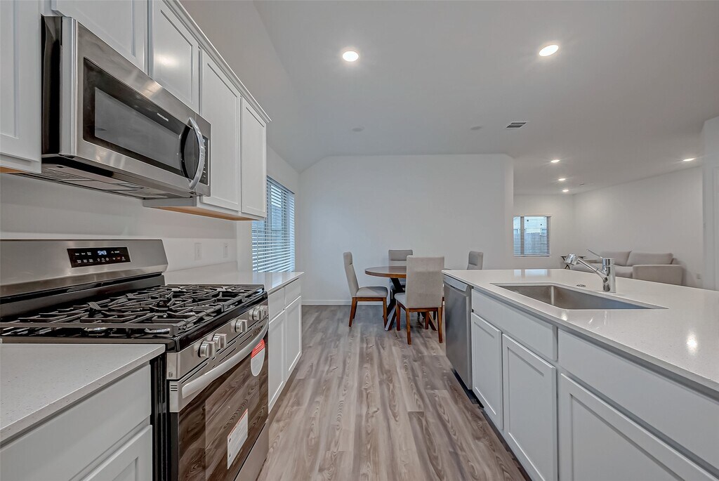 NEW PRICE!!! JUST LIKE NEW! Stunning Lennar home -3 bedroom,2-bathroom showcasing an eye-catching brick & stone elevation,creating an impressive first impression with its sleek curb appeal. The modern entry door welcomes you with a sophisticated office space w/french doors,vinyl plank flooring leads you the main areas of the home,while plush carpeting adds warmth to the bedrooms. The open-concept kitchen features a spacious island,granite countertops,a stylish tile backsplash,an undermount sink,SS appliances,& a walk-in pantry. The family room is bathed in natural light thanks to its bright,airy windows. Retreat to the generously sized primary suite,complete with a spa-like ensuite featuring a walk-in shower,elegant vanity,and a spacious walk-in closet. 2 additional bedrooms,each with their own walk-in closets. Outside,to enjoy the covered patio and a sizable backyard. MLS# 60993694