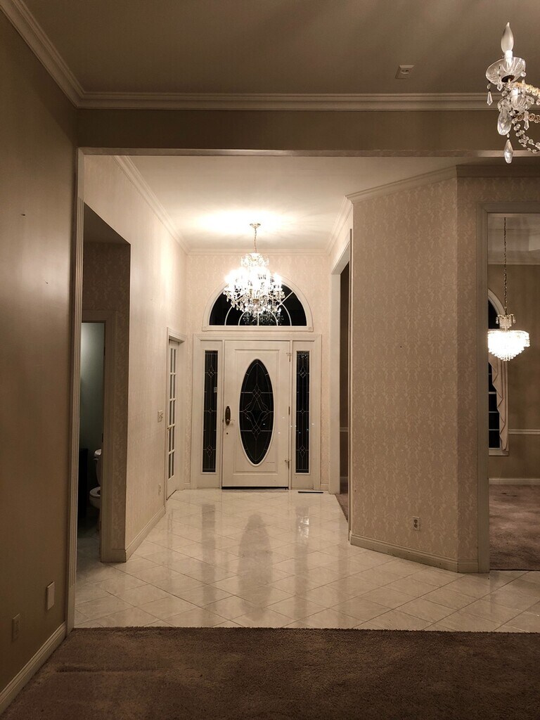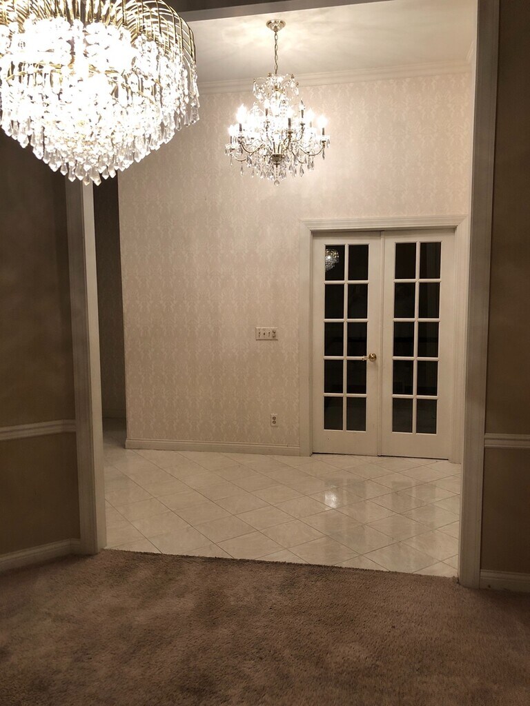 Beautiful one story floor plan. House features four bedrooms with new flooring and paint. Two and half baths with updated sinks. Open chef's kitchen overlooking family room. Gorgeous chandeliers throughout. Flat level lot with low maintenance. One pet is considered with a fee