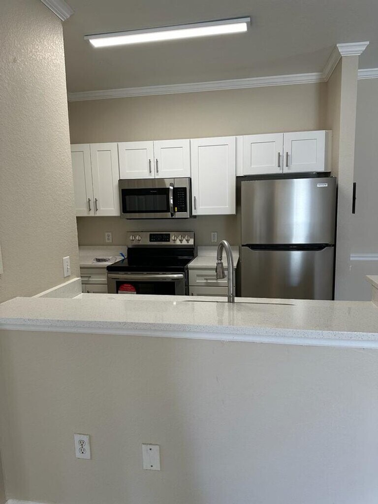 Gated community steps from Millennia Mall offers 2 bedroom 2 bath. Both bedrooms have baths attached and the kitchen has tiled counters. Indoor laundry with full size washer & dryer. Some of the interior features include split bedrooms, oversized patio, and additional storage room. Onsite facilities include 24 hr. fitness center, sand volleyball, tennis courts, clubhouse with billiards and theatre room. Alarm system included along with valet trash service.