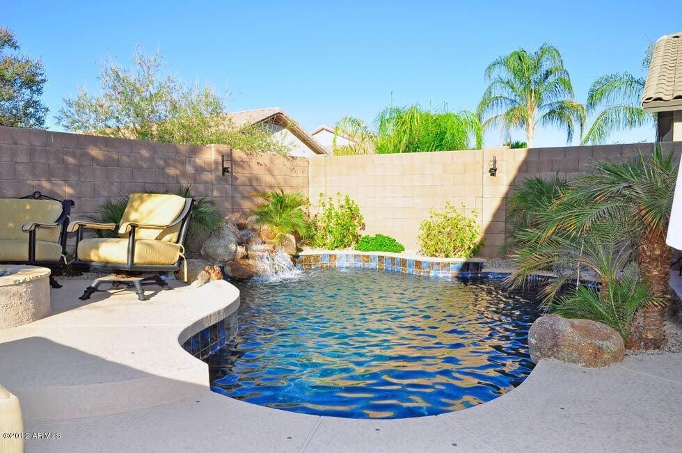 Below market value for this well-kept home in the heart of Desert Ridge. Location,location,location! Quiet street,no through traffic. Spacious & open floorplan with kitchen island & easy access to the covered patio,sparkling pebble tech pool & waterfall,built-in BBQ & gas firepit. Primary bedroom boasts walk-in closet,separate tub & shower. Frig/washer/dryer included. Newer flooring in the bedrooms. N/S facing. Recently replaced roof & AC. Easy access to the 101 & the 51. Award winning PV Schools. Walking/bike paths,nearby hiking trails,pocket parks,Desert Ridge shopping,dining,movies,Marriot Golf Course & so much more.