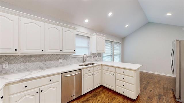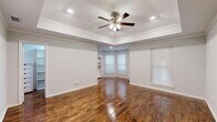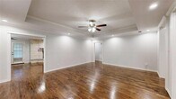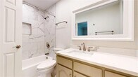 MOVE IN READY! Renovated January 2026! Beautifully updated 1.5-story in an established Bedford neighborhood, just minutes from numerous dining, shopping, and entertainment options and only a short distance to DFW Airport! Terrific drive-up appeal is enhanced with a beautiful brick elevation, mature trees, and immaculate landscaping! Inside you will find 4 bedrooms with private baths, a formal dining area, second living space, and 2-car garage! Upgrades and amenities include rich hand-scraped hardwoods throughout main living areas, neutral paint tones, extensive molding and woodwork throughout, tiered and vaulted ceilings, cozy stone fireplace, and MORE! Kitchen boasts quartz countertops with a decorative backsplash, an abundance of bright white cabinetry, stainless appliances with double ovens, an electric cooktop, and eat-in area with breakfast bar. Primary retreat with 9x9 sitting area offers a luxurious ensuite with a dual sink vanity, free-standing tub, two walk-in closets with built-ins, and shower with rainfall shower head. Two secondary bedrooms are located down the hall, each with a walk-in closet and private bath. Upstairs is a large 4th bedroom and full bath that make a terrific game room or guest suite! Large backyard is complete with an expansive covered patio area perfect for grilling and entertaining!