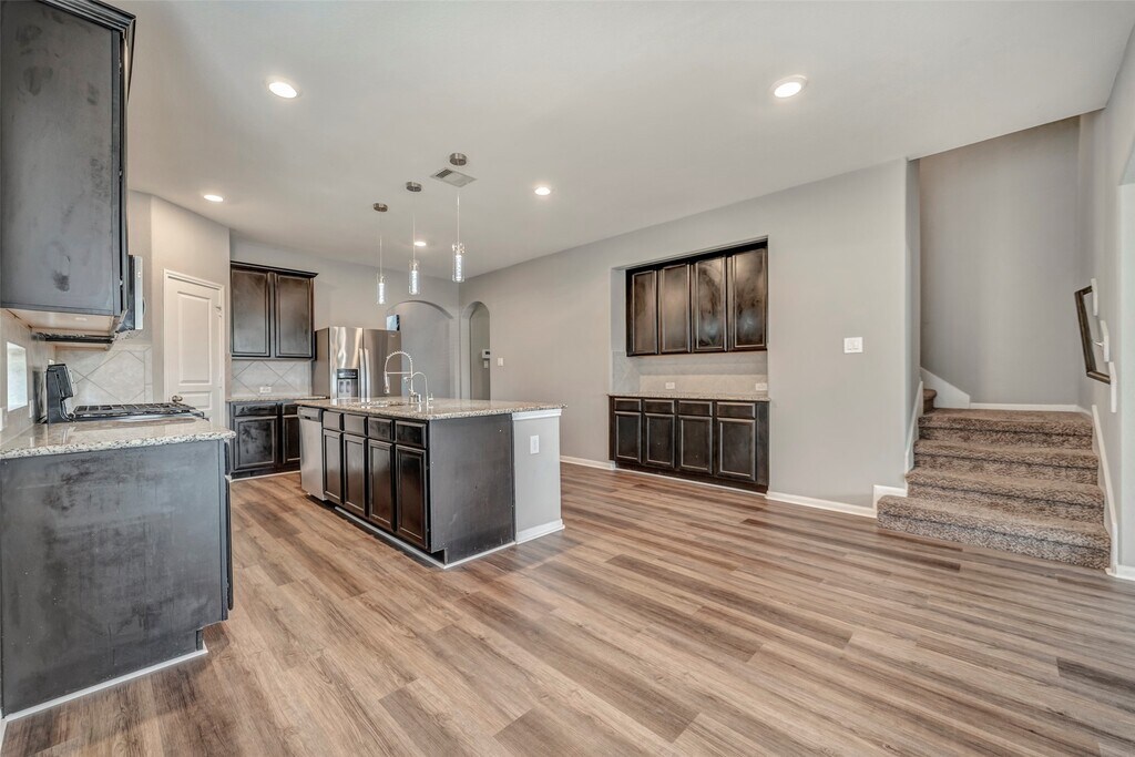 As you come through the front door on the vinyl plank flooring,your dining room is on the front right side. Walking down the entry way,entering the kitchen you see a granite top kitchen island. A butler pantry is for your fine china and to set up your coffee maker. 5 burner gas stove. 2 deep sinks. Pendant lighting hangs above the kitchen island. Plenty of counter top and cabinets to make preparing meals fun. The water softener and reverse osmosis provides clean drinking water. The large living room,provides a huge wall for that large TV screen. As you go through the primary bedroom,plenty of room for your dressers,you enter the bathroom with a bench. Soaking tub. Also there is access to the laundry room from the primary closet. A room that is private for you to work during the day. Upstairs has the game room,3 bedrooms and a bathroom. Carpet throughout the upstairs. Outside there is a covered patio with a nice size yard. Katy ISD. Highway 99 is nearby. MLS# 11996721