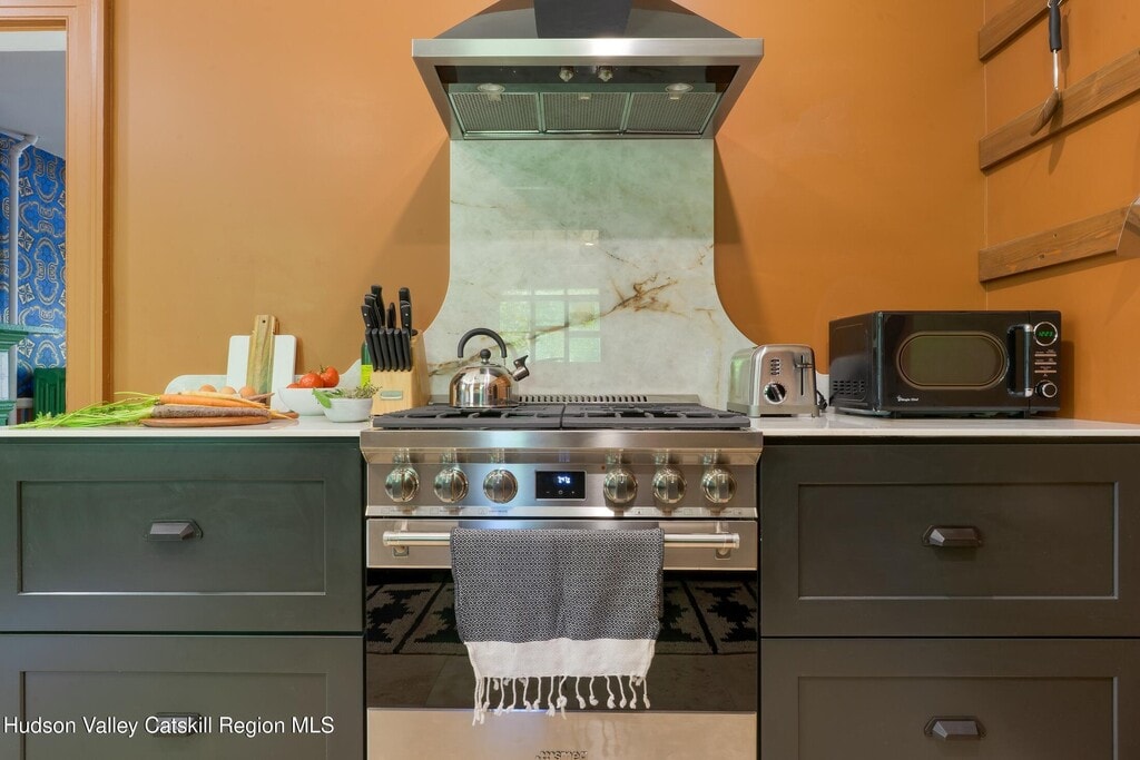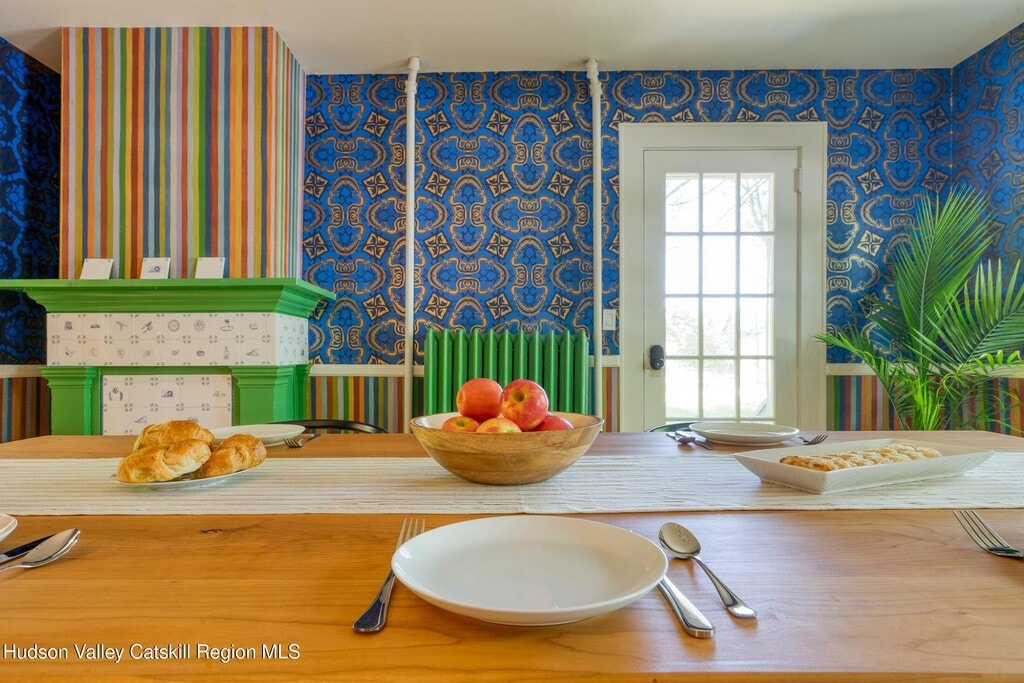 Historic Modern on Main,stylish - Historic Modern on Main: stylish 3-bedroom home surrounded by mature trees and natural beauty - Spacious living with two king and two queen bedrooms plus 2.5 bathrooms,perfect for families and groups - Fully equipped kitchen with modern appliances and ample counter space for easy entertaining - Bright,colorful interiors and carefully curated décor create a warm and inviting atmosphere - Peaceful wooded setting offers a relaxing retreat after a day of exploring Stone Ridge and beyond The space Discover the perfect blend of modern comfort and vibrant style in this stunning 3-bedroom home nestled in the heart of Stone Ridge,New York. Surrounded by mature trees and natural beauty,Historic Modern on Main is a beautiful two-story home with a charming flower-lined entrance that sets the tone for your stay. Inside,you'll find a contemporary interior design that's both colorful and inviting,featuring bright living spaces that inspire relaxation and connection. The home comfortably accommodates guests with one king bedroom and two queen bedrooms,ideal for families or groups seeking privacy and comfort. Two full bathrooms showcase beautiful,high-end finishes,while an additional half bathroom adds convenience for larger gatherings. The fully equipped kitchen is thoughtfully designed with modern appliances and ample counter space — perfect for cooking and entertaining whether you're preparing a quick breakfast or a celebratory dinner. Every detail inside this home reflects a commitment to style and functionality,from the spacious living areas to the carefully curated décor that complements the serene wooded surroundings. Whether you're unwinding indoors or stepping outside to enjoy the peacefulness of the natural landscape,this home offers an ideal retreat after a day of exploring.