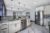 This fully renovated 5-bed, 3-bath home is turn-key from top to bottom. Everything is brand new—kitchen, baths, systems, flooring, roof, windows, and more. The main level features an open layout with hardwood floors, modern lighting, and a designer kitchen with quartz counters and stainless steel appliances. The finished basement adds bonus living space, a wet bar, and private entry—perfect for guests, in-laws, or rental potential. Upstairs offers additional bedrooms and flexible space. Sitting on a .14-acre lot with a covered front porch and private backyard, this home blends style, space, and value—inside and out. Easy to show and ready for move-in. Ask about financing options that make this one more affordable than you'd think.