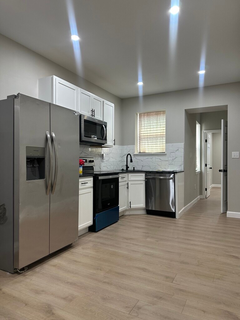 At 3715 Belair Road, you will find a charming shared common area porch, perfect for savoring your morning coffee while enjoying the view. The property boasts an inviting open-concept layout with central air conditioning, offering a comfortable and spacious living environment. The modern kitchen features top-of-the-line stainless steel appliances, complemented by elegant faux black marble countertops and a stylish backsplash. To further enhance convenience, the kitchen is equipped with a front-load washer and dryer, providing efficiency and ease for your daily tasks.