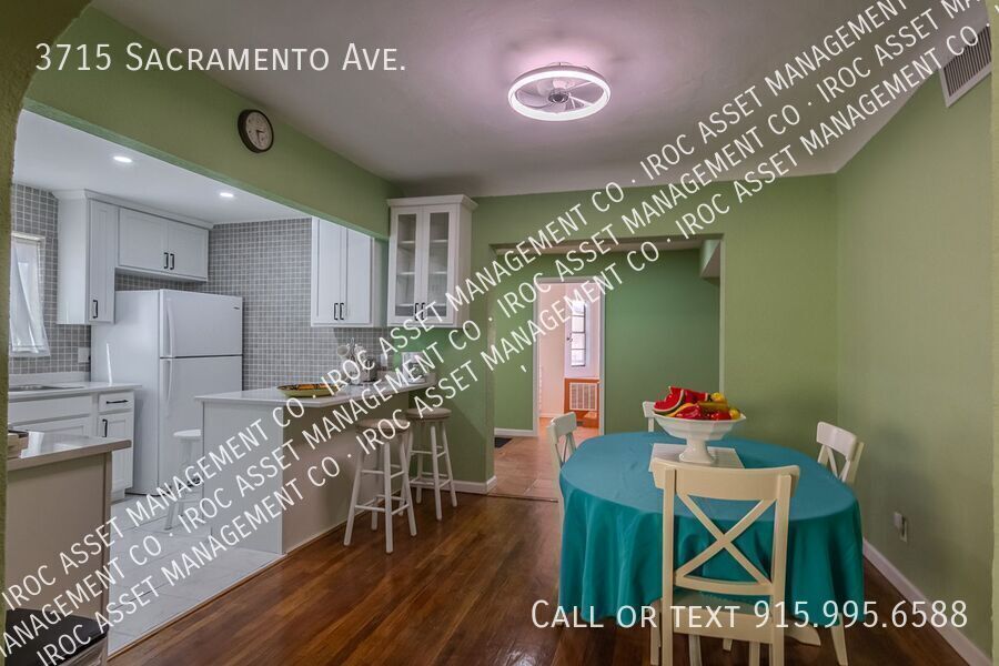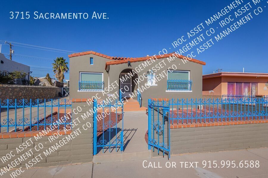 Welcome to this charming 3-bedroom, 2-bath home in central El Paso—about 80% furnished with many new appliances, ready for an easy move-in. The open living and dining areas flow seamlessly, while the kitchen shines with updated appliances and plenty of storage. You'll love the two full bathrooms, including a luxurious master bath with Jacuzzi tub and walk-in shower—your private spa retreat. The real showstopper? A huge covered pergola with full electricity, perfect for entertaining and enjoying El Paso's beautiful weather year-round. Plus, a practical mudroom with a washer, a dryer, a dedicated water heater, and plenty of storage space—laundry convenience at its best. Located at 3715 Sacramento Ave in an established central neighborhood with quick access to I-10, UTEP, downtown, medical centers, shopping, and dining. Just bring your essentials and settle in—this home has it all. Features and amenities 3 bedrooms / 2 full bathrooms (approx. 1,407 sq ft) Master bathroom with Jacuzzi tub and walk-in shower Full hallway bathroom for guests/family Huge covered pergola with full electricity for year-round outdoor entertaining Mudroom with washer and dryer included, dedicated water heater, and plenty of storage About 80% furnished (living, dining, and bedroom pieces included) Many new appliances have been recently installed throughout Central El Paso location near UTEP, downtown, hospitals, and major employers Spacious living and dining areas Low-maintenance yard perfect for El Paso's climate Professionally managed by IROC Asset Management Company Four Car Parking Gated Home Jacuzzi Laundry Room Pergola Refrigerated Air New Appliances Solar Power Washer And Dryer
