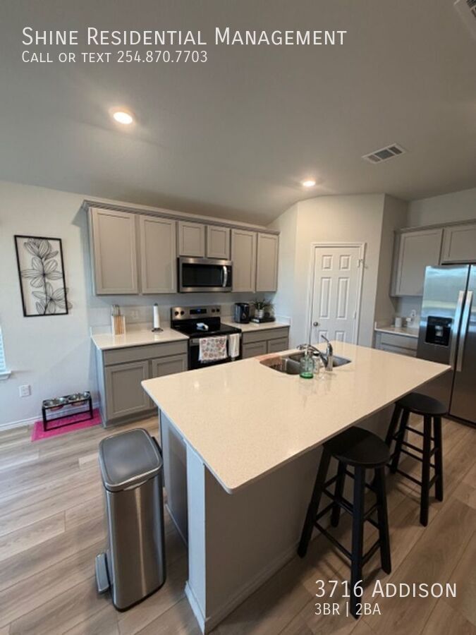 Welcome to the Yowell Ranch Subdivision, a stunning home located in the heart of Killeen, TX. This beautiful property boasts three spacious bedrooms and two full bathrooms, offering ample space for comfortable living. The kitchen is a chef's dream, featuring a pantry, stainless dishwasher, recessed lighting, and a kitchen sink located in a large island. Marble countertops add a touch of elegance to both the kitchen and bathrooms. The master bathroom is a private oasis, complete with a separate toilet room, a separate shower, and a large walk-in closet. The home also includes a variety of modern amenities such as a digital thermostat, security system, and smart light switches throughout the house. The two-car garage comes with an opener and a coated floor for easy maintenance. The property is surrounded by a wood privacy fence and includes a sprinkler system for easy lawn care. The home's interior is a blend of carpet and wood flooring, and the exterior features coated front and back patio areas. With ceiling fans, garbage disposal, a stainless microwave vent hood, a stainless side-by-side refrigerator with water and ice in the door, and a stainless glass flat top oven, this home is the epitome of convenience and style. Enjoy the added comfort of central heat/air, white faux wood window blinds, and linen closets. This home truly has it all. 2 Car Garage Parking With Opener Carpet/Wood Flooring Through Out House Central Heat/Air Coated Front And Back Patio Areas Coated Garage Floor Digital Thermostat Kitchen Sink Located In Island Large Walk In Closet In Master Bathroom Linen Closets Marble Counter Tops In Kitchen And Bathrooms Pull Down Kitchen Sink Faucet Recessed Lighting Security System Seperate Shower In Master Bathroom Seperate Toilet Room In Master Bathroom Smart Light Switches Through Out House Stainless Dishwasher Stainless Glass Flat Top Oven Stainless Microwave Vent Hood Stainless Side By Side Refrigerator With Water And Ice In Door Tile Shower Surrounds In Master And Guest Bathroom White Faux Wood Window Blinds Wood Privacy Fence
