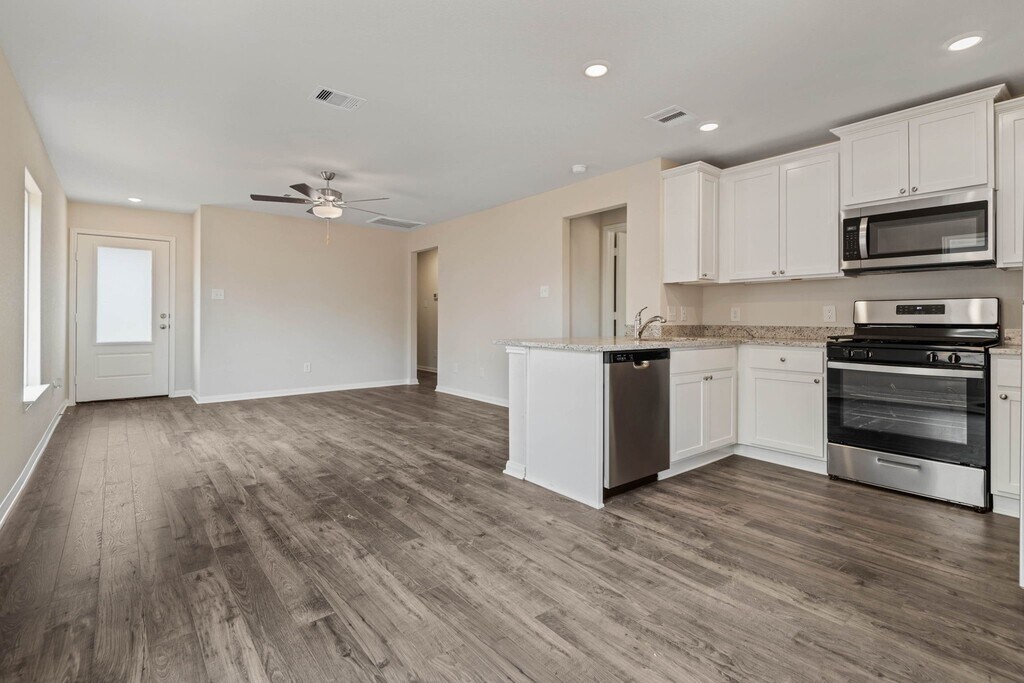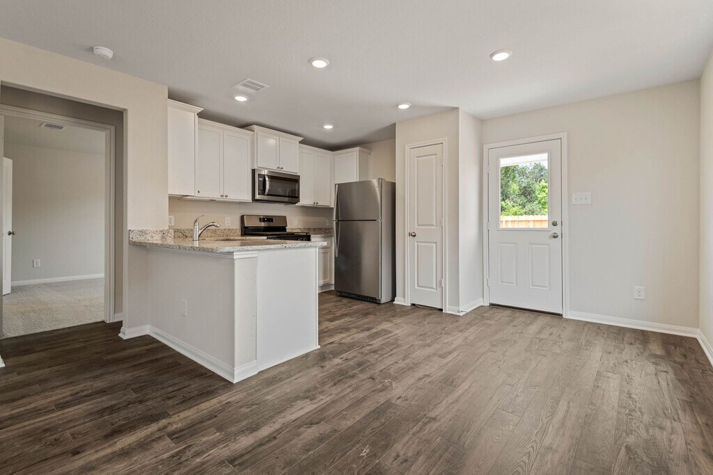 This delightful home is located at Waller's newest community,Trails at Cochran Ranch. The Atticus plan is nicely appointed and includes an upgraded kitchen with stunning wood cabinetry,granite countertops,recessed LED lighting,luxury vinyl plank flooring and a full suite of appliances by Whirlpool,including a refrigerator and built-in microwave. The family room will comfortably fit your sectional sofa,coffee tables and big-screen TV,while the oversized back patio extends the entertainment space outdoors. The primary suite showcases a generously sized bathroom and walk-in closet. Tour this home today and experience the peaceful neighborhood of Trails at Cochran Ranch. MLS# 17575621