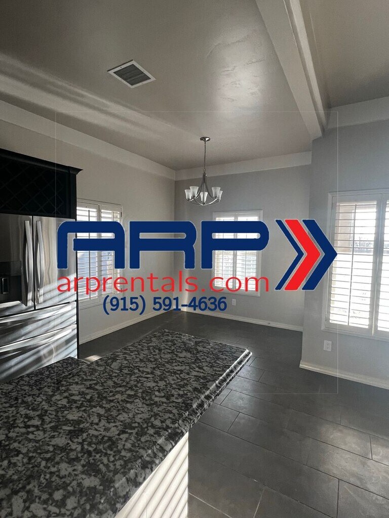 This elegant Eastside home features 3 bedrooms, 2 bathrooms, spacious living room, stainless steel kitchen appliances, double-attached garage, refrigerated air, front landscaping, backyard features covered back patio. Located near the intersection of Rich Beem Blvd and Edgemere Blvd, this home provides easy access to the Tierra Buena Dog Park, Loop 375, I10, Montana Blvd, Fort Bliss, and a range of shopping and entertainment opportunities on El Paso’s dynamic Eastside. No pets. A Lease Processing Fee of $150 will be assessed upon application approval.