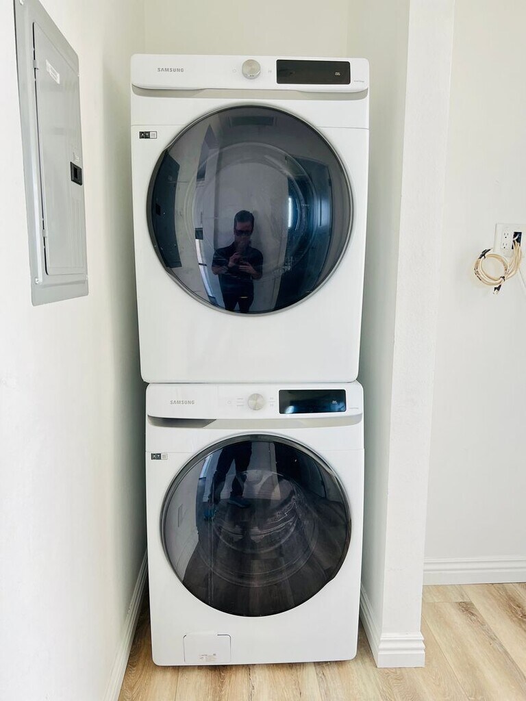 Newly built beautiful 2 bedroom spacious back house in desirable residential Neighborhood. Featuring luxury finishes, countertops, high ceilings, in-unit stacked washer dryer, stove and refrigerator appliances included in lease. Enjoy sunset views from your private balcony. This unit is only accessible by stairs and through the driveway gate from front house. Convenient freeway access 405 & 710. Inquire today.