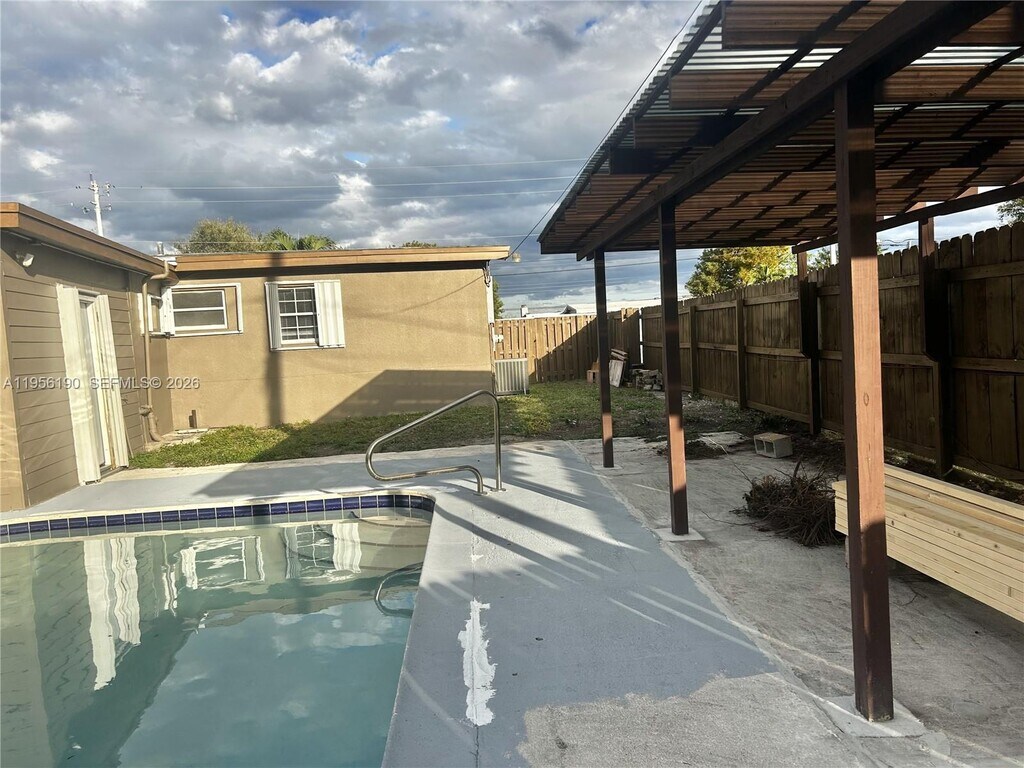 Spectacular Pool Home with Resort-Style Amenities & Massive Parking Step into your private paradise! This expansive 4-bedroom, 3-bath residence is designed for both relaxation and entertaining. At the heart of the home lies a stunning open-style kitchen, featuring rich wood cabinetry, gleaming granite countertops, and a built-in microwave ready for your culinary creations. The floor plan offers a unique blend of elegance and comfort, with cool ceramic tile throughout the main areas and warm, inviting wood flooring in the cozy family room and spacious laundry area. Outdoor Living: Dive into the refreshing pool or relax under the cabana-style sunshade. Safety & Convenience: Fully equipped with storm shutters for hurricane season and a massive driveway suitable for 4+ vehicles. Retreat to the luxurious Primary Suite, a massive bedroom featuring a private, connecting ensuite bathroom designed for total relaxation. Practicality meets luxury with a huge laundry room offering abundant storage. Outside, the backyard is a true showstopper. Enjoy the sun while lounging by the sparkling pool or cool off under the custom cabana-style sun protector. Peace of mind is guaranteed with full storm shutters for hurricane protection. With an oversized driveway accommodating 4 or more cars, this home is ready to welcome all your family and friends. MLS # A11956190