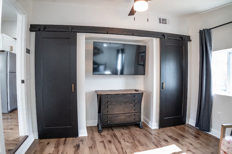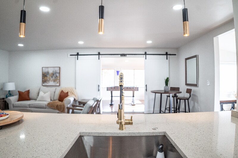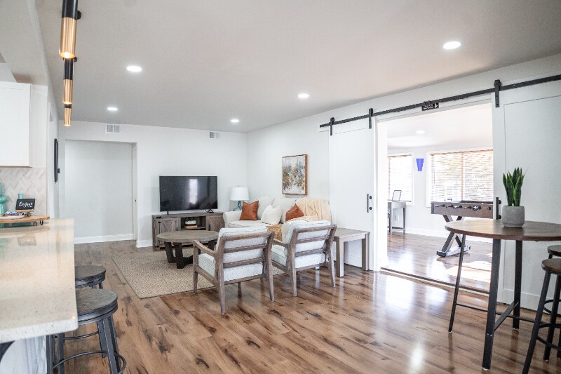 Property Id: 1262308 This stylish fully furnished house was specifically designed to offer you a comfortable stay. Perfect for short-term stays; It provides a fully equipped kitchen, fully furnished, washer and dyer in unit, cable television, and free high speed wireless internet. An open concept living area greets you at the door with large windows and ample sunlight. The chefs kitchen island is the focus for entertainment. The property has a recreational room and office with a privacy barn door. The master offers a king bed with his and hers closet and a luxury ensuite bathroom. There is a total of 4 bedrooms and two full bathrooms. The secondary room offers a full size bed. The third bedroom has two full size bunk beds and the middle room has a twin size trundle (2twins). The property sleeps up to 8 comfortably. The home is conveniently located close to shopping, dining, entertainment, and public transportation. All utilities are included but capped within considerable.