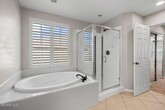 Nestled in a tranquil Ana Verde neighborhood, this remarkable 5-bedroom, 3-bathroom home spans 2,698 sqft of thoughtfully designed living space across two stories. Boasting modern elegance, the interior features a welcoming open-concept layout, complete with a spacious family room, a cozy fireplace, and a well-appointed kitchen with updated countertops and a stylish backsplash. The bright dining area is perfect for hosting, with natural light streaming through plantation shutters. The upstairs primary suite offers a peaceful retreat with generous space and an en-suite bathroom featuring dual vanities, a soaking tub, and a separate shower. Four additional bedrooms provide plenty of flexibility for family, guests, or a home office. The backyard showcases a lush artificial lawn and a stunning pergola-covered patio, creating the ideal space for entertaining or enjoying serene evenings outdoors. Situated near schools, parks, and convenient shopping, this home blends comfort, style, and practicality in a highly desirable location. Don't miss out on this gem--experience a lifestyle of charm and functionality in the heart of Ana Verde.