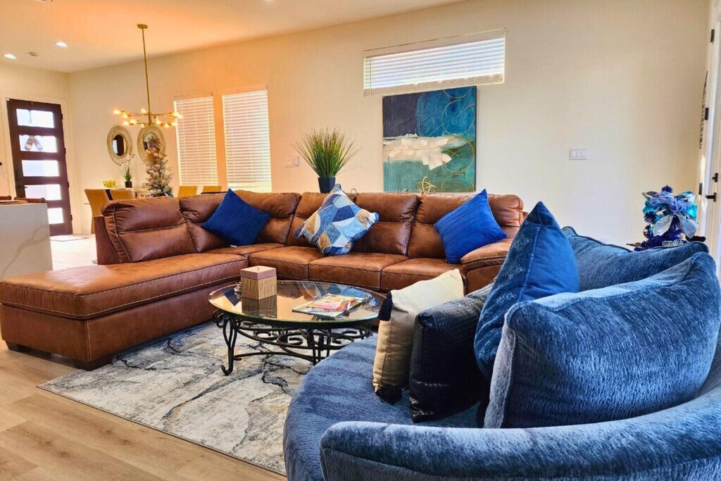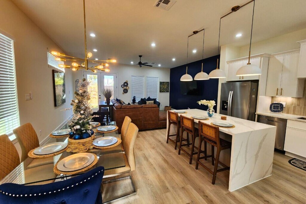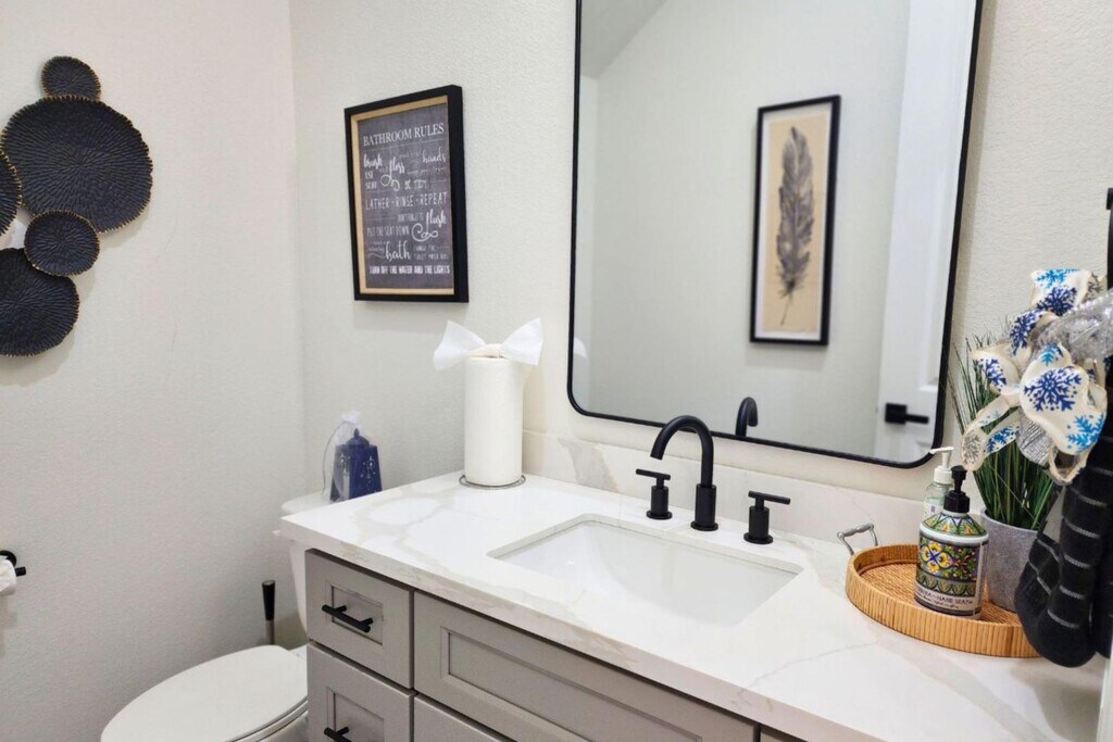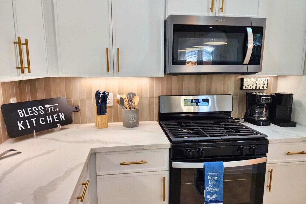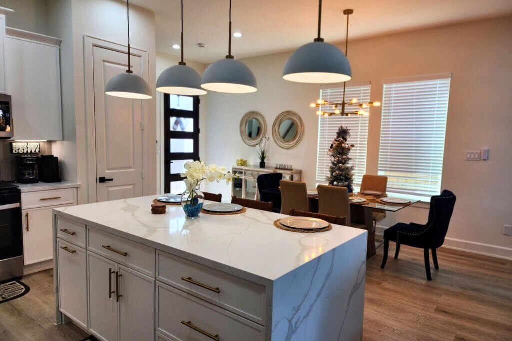 Escape to this beautifully designed modern farmhouse near Houston’s Medical Center and Downtown. This 3BR, 3.5BA home features a chef’s kitchen with a waterfall island, open living and dining spaces, and a second-floor lounge with a wet bar. The spacious primary suite offers high ceilings, a soaking tub, and a walk-in shower. Enjoy smart TVs in every bedroom, high-speed Wi-Fi, and a game room with board games. Outside, relax in the private, fenced backyard or take advantage of the secure 2-car garage. Each bedroom is thoughtfully furnished—king, queen, and twin beds—with air mattresses for extra guests. Located in South Union, you're minutes from top attractions like the Museum District, NRG Stadium, Hermann Park, and major highways. Whether for business or leisure, this home delivers comfort, style, and convenience in one perfect Houston location. Welcome to your modern Houston getaway near the Medical Center, Downtown, and Museum District! This spacious 3BR, 3.5BA home offers ...